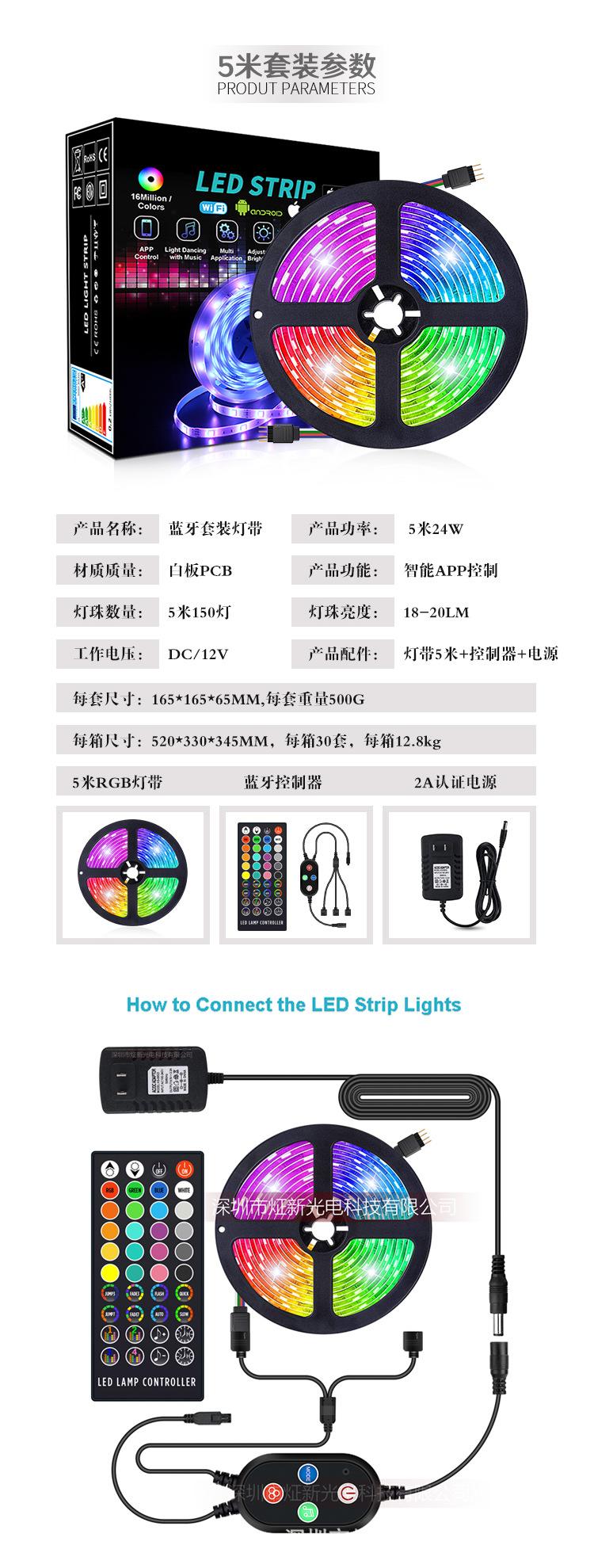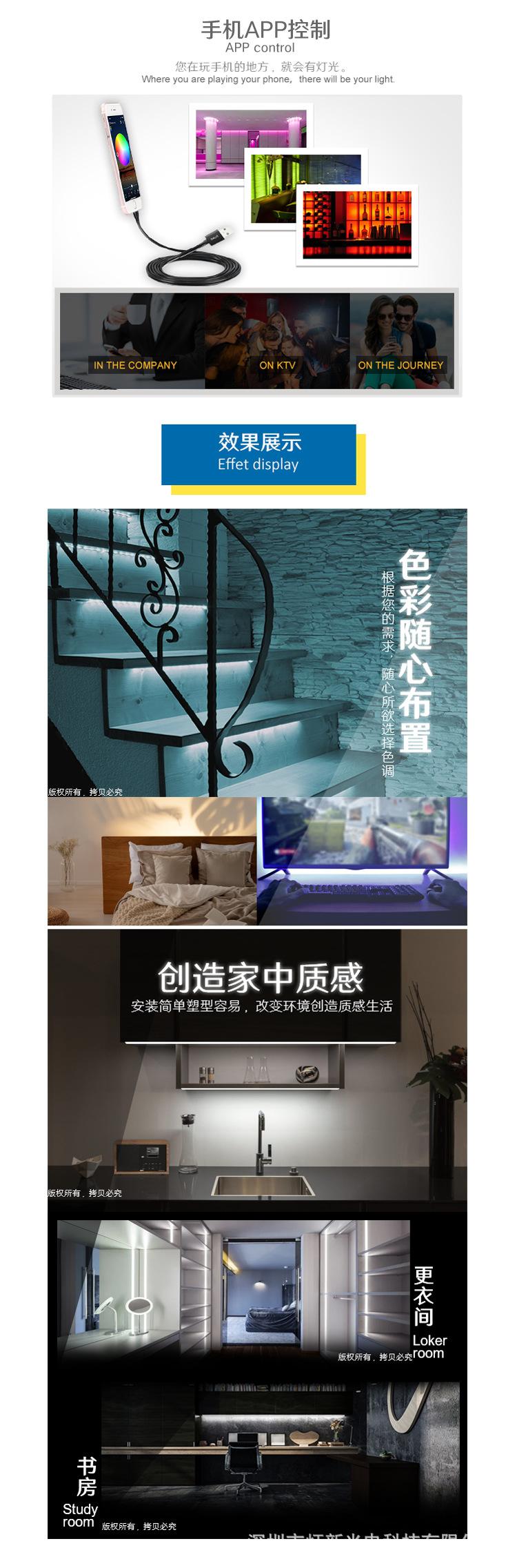 Tira de luz colorida USB 5VRGB Tira de luz Bluetooth TV Tira de luz TV, tira de luz APP inteligente