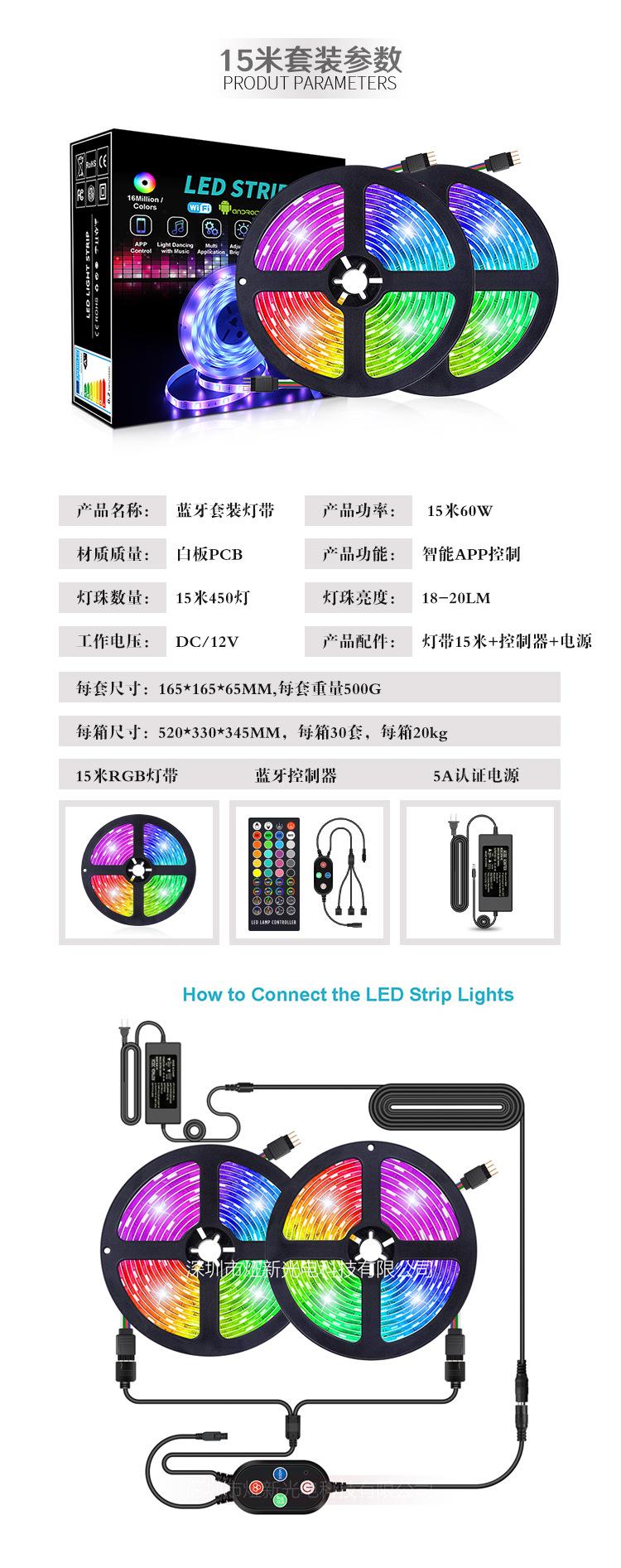 Conjunto de faixa de luz Bluetooth mais popular da Amazon, faixa de luz inteligente, conjunto de faixa de luz musical, faixa de luz certificada pela UL