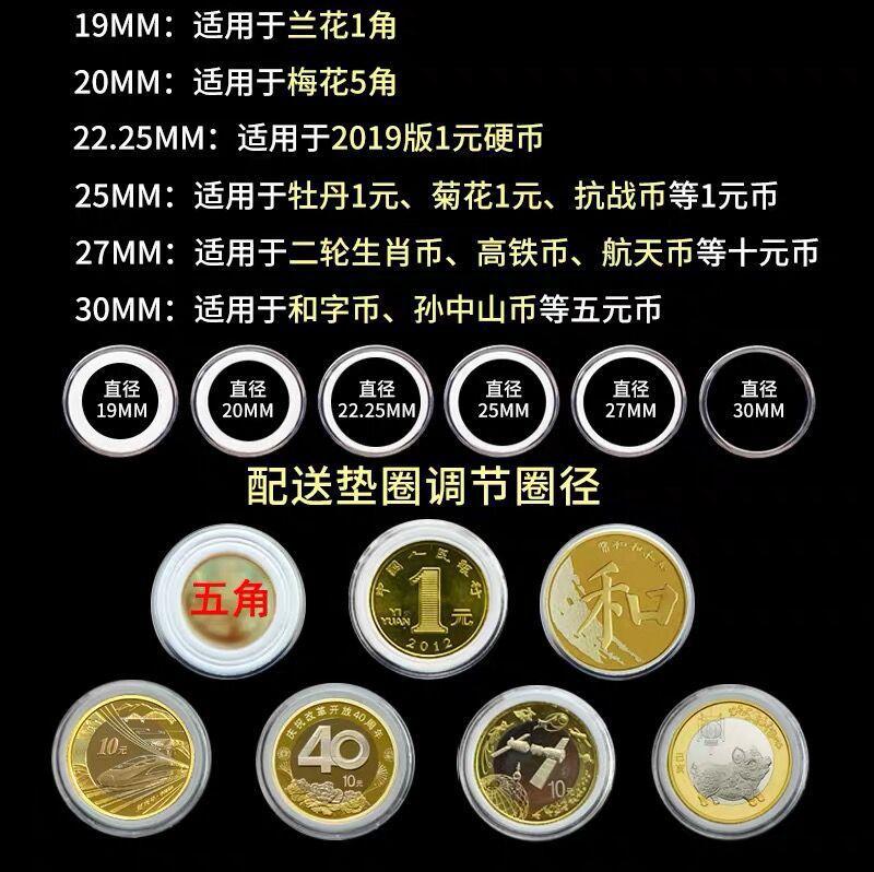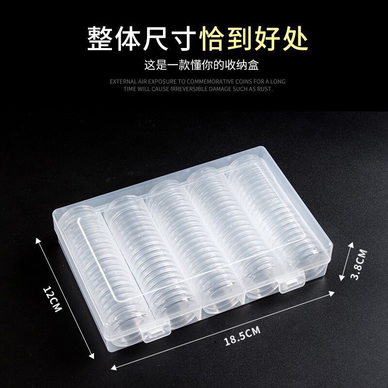 Caixa de moedas: Feita de plástico altamente transparente e espesso, à prova de poeira e antioxidante; pode conter moedas comemorativas não superiores a 20/25/27/30 mm
