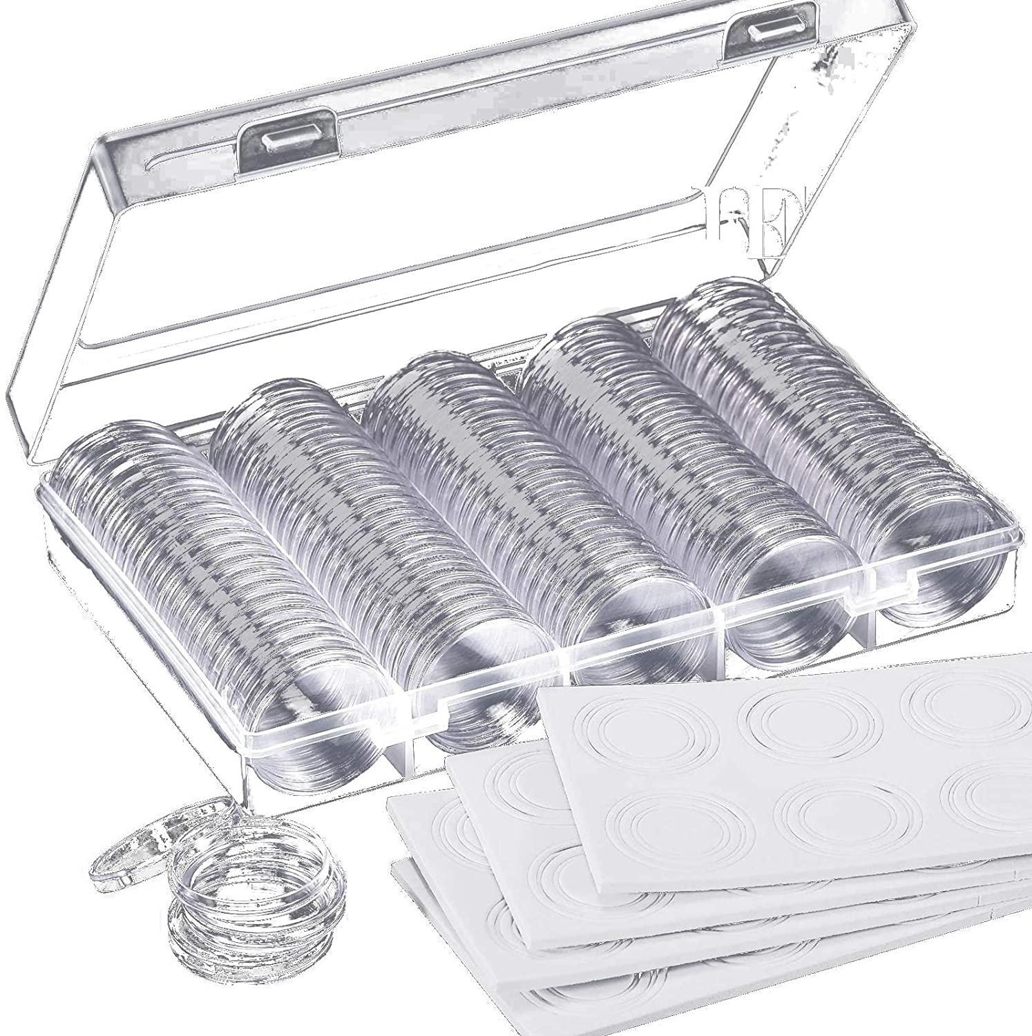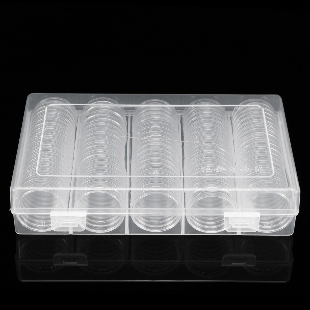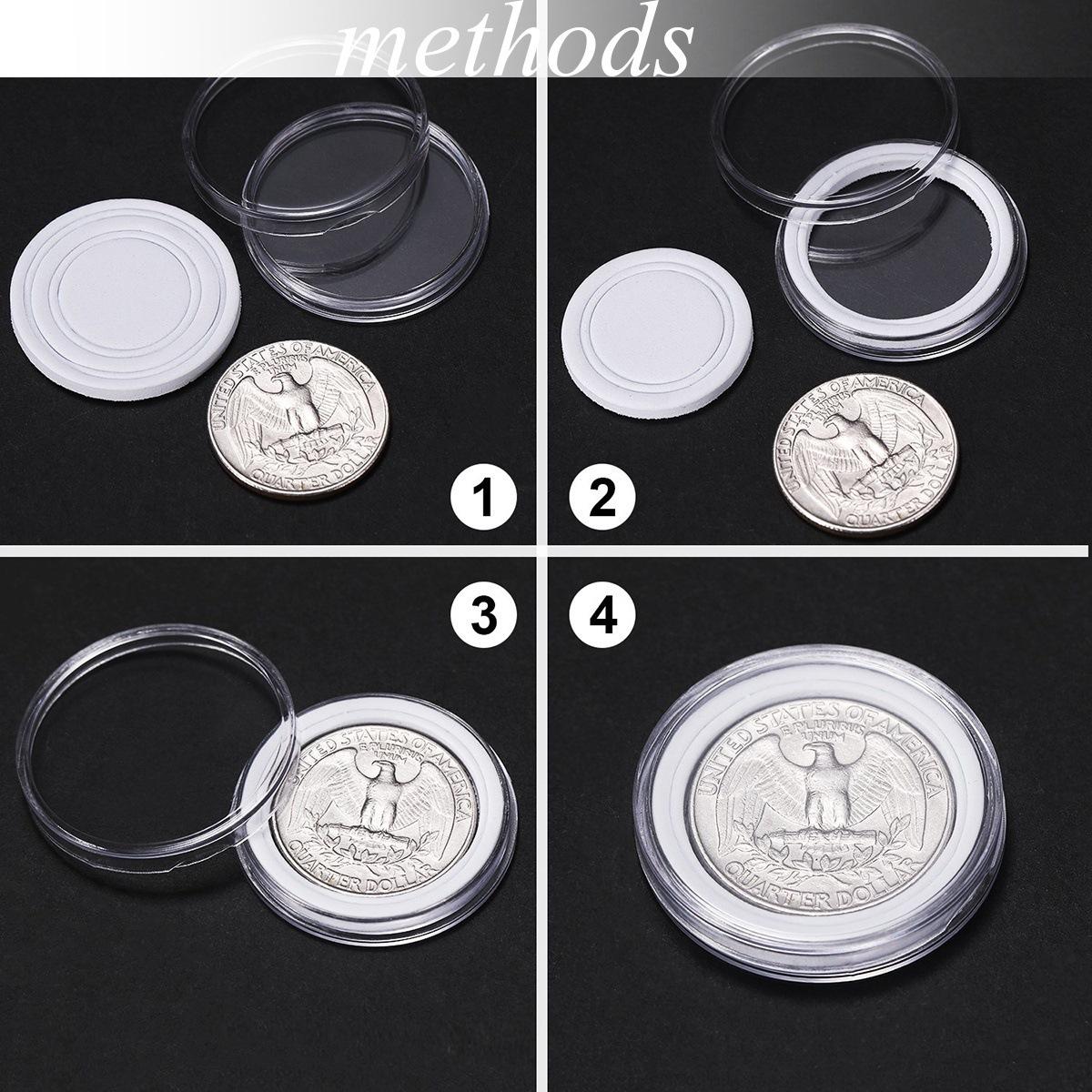 Conteúdo da embalagem: Este protetor de moedas inclui 100 caixas de moedas, 1 caixa de armazenamento de plástico e 100 almofadas de espuma EVA correspondentes, um presente prático para colecionadores de moedas para armazenar e proteger moedas
