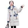Casaco acolchoado de algodão feminino com capuz longo inverno 2024 nova cor combinando estilo estrangeiro casaco acolchoado de algodão estilo coreano casaco grosso