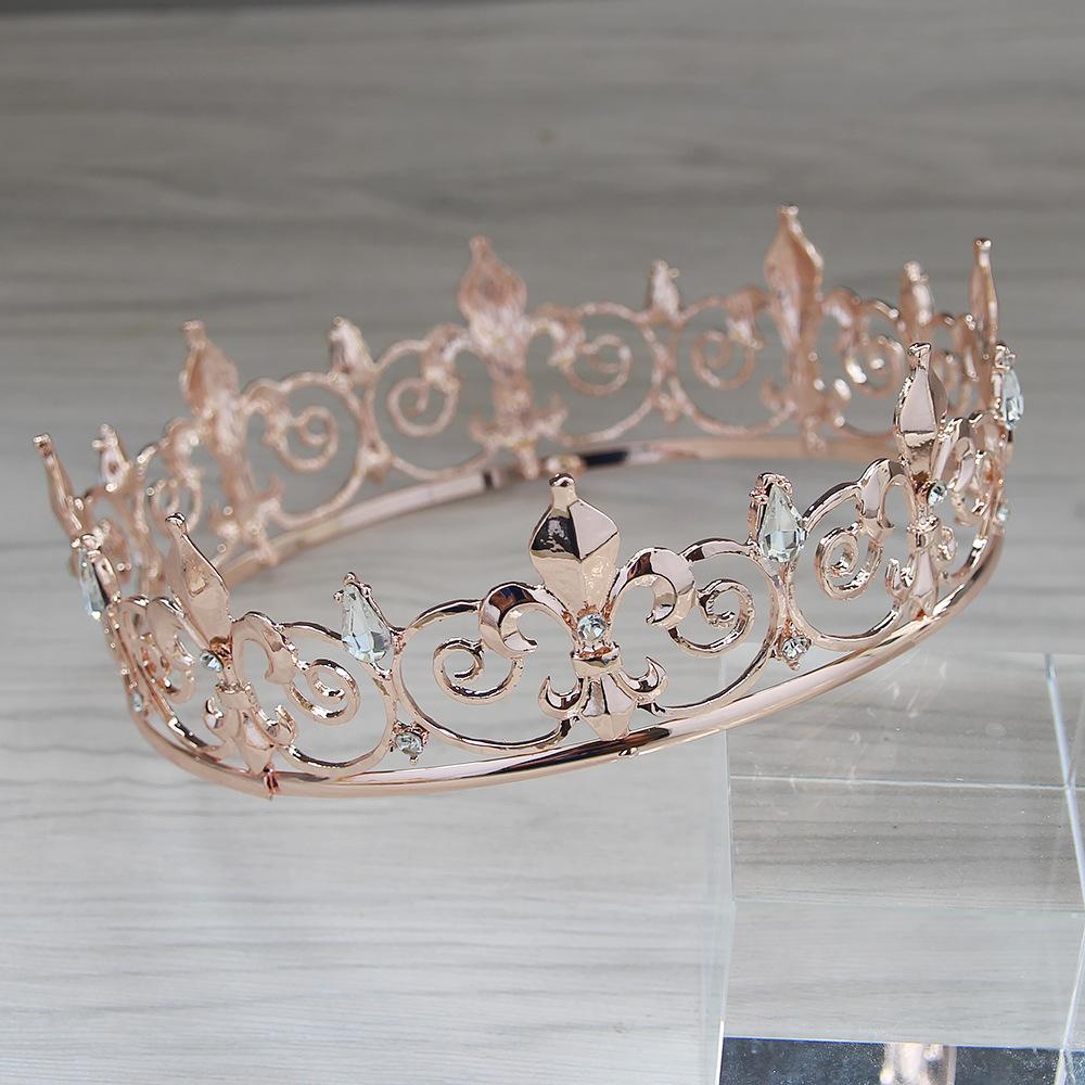 Nome: Coroa de noiva europeia e americana, acessórios para vestido de noiva em liga de diamantes, acessórios populares para cabelo transfronteiriços, grande coroa redonda, fornecimento