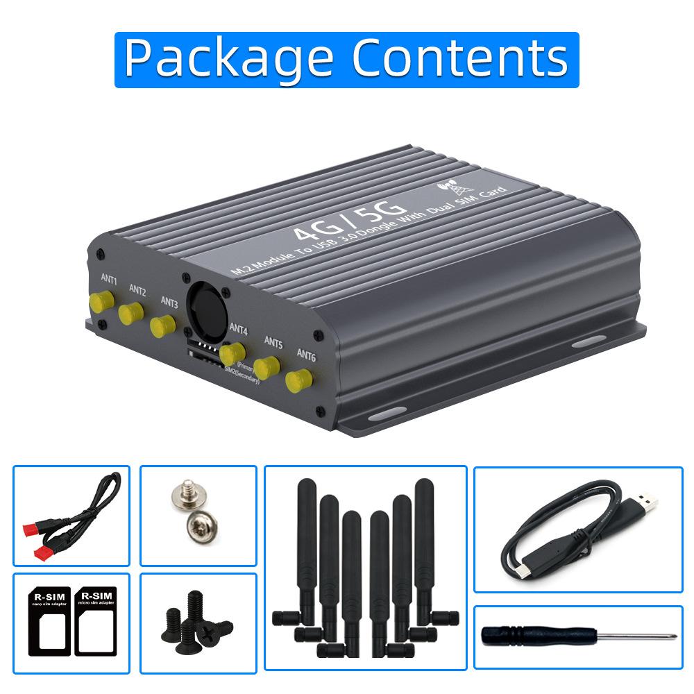 Adaptador de Módulo NGFF(M.2) 4G/5G para USB 3.0 com Ventoinha de Refrigeração Dupla/Slot para Cartão SIM Duplo e Alimentação Auxiliar