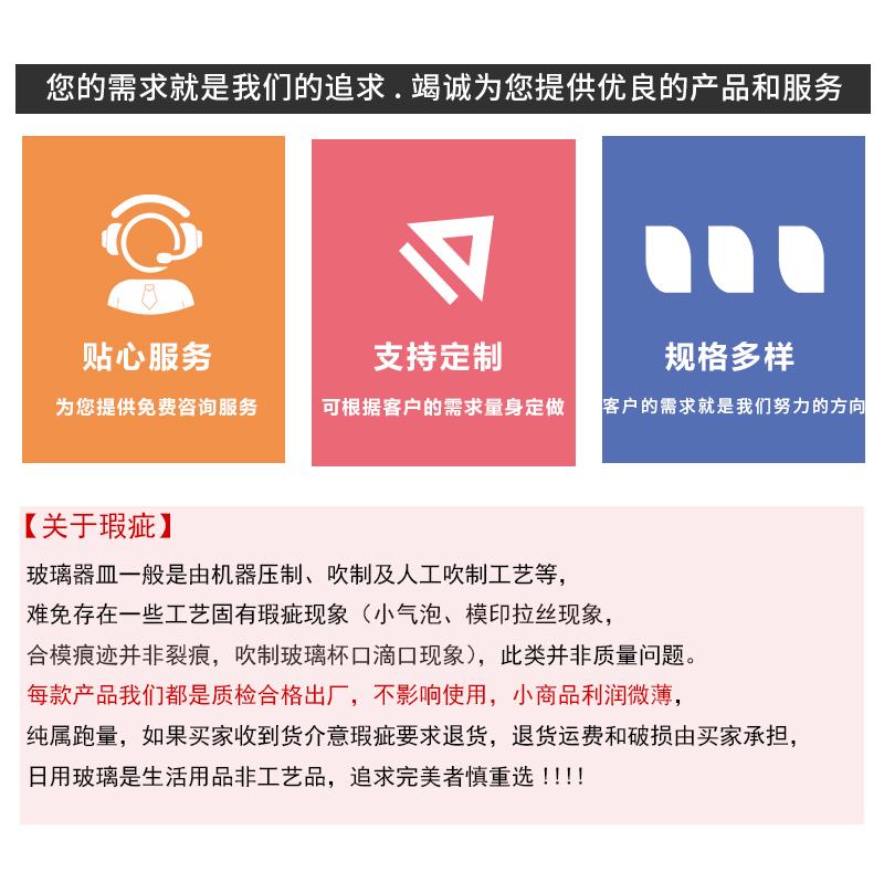 Nossa empresa é especializada na produção de produtos de vidro e pós-processamento de produtos de vidro, como cozimento, pulverização, galvanoplastia, geada, serigrafia e outros processos. Os produtos podem ser personalizados em tamanho ou capacidade, e o logotipo pode ser personalizado. Devido à grande variedade de produtos individuais, é impossível carregá-los um por um. Se necessário, você pode vir até a foto para discutir