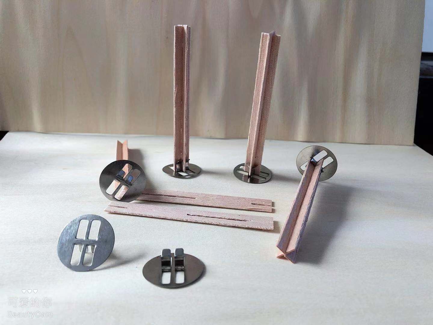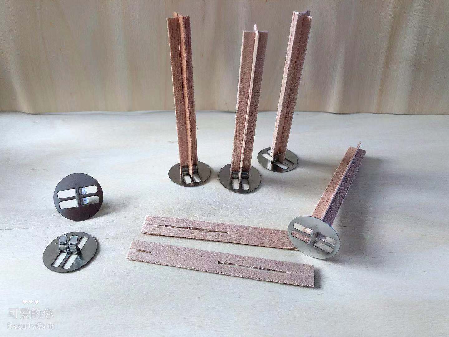 Se você usar a cera de parafina industrial comum no mercado, 1 pedaço de núcleo de madeira + 1 base de metal pode deixar o núcleo de madeira cheio de