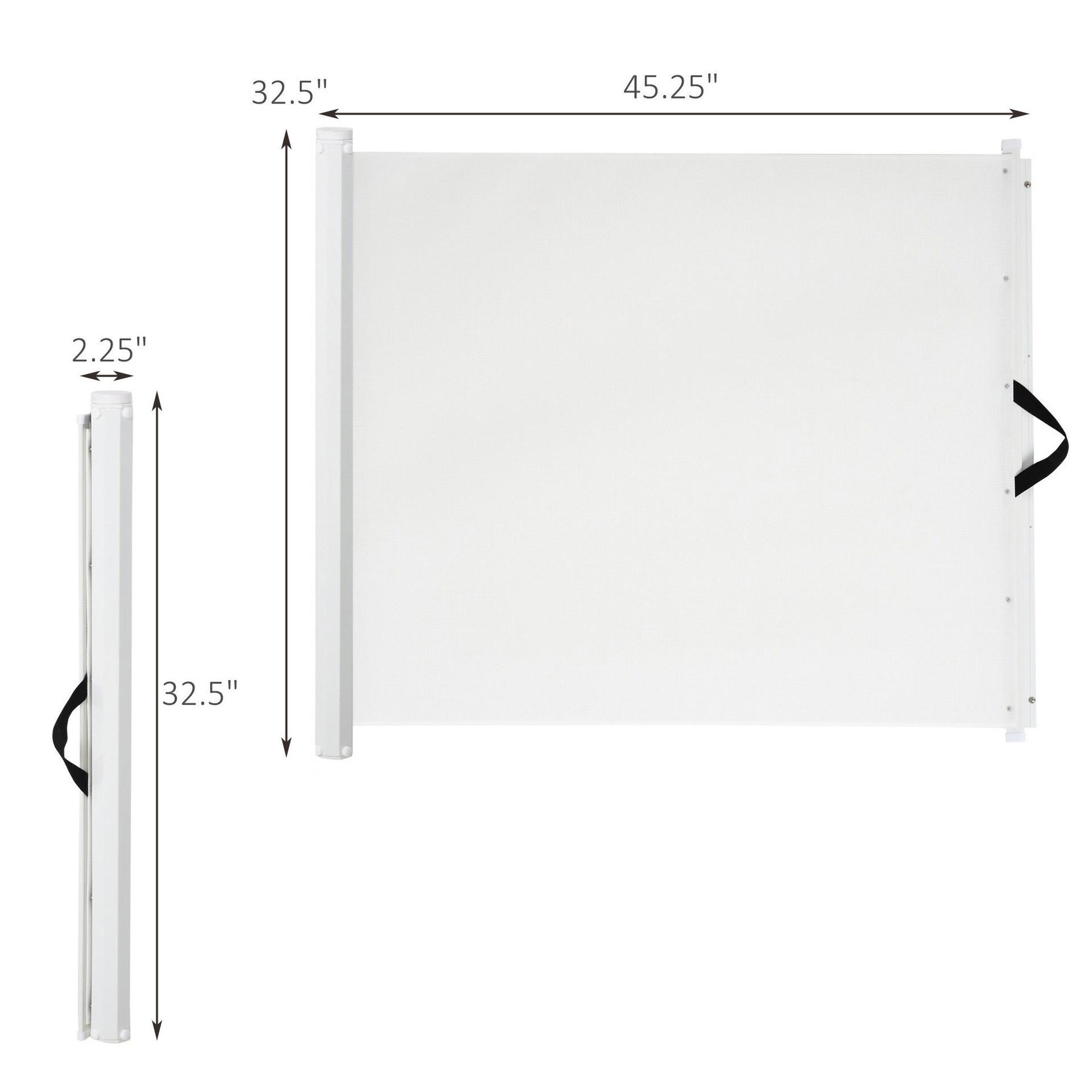 Design retrátil, sem necessidade de espaço; a porta retrátil para animais de estimação pode ser estendida para 42,25 polegadas (115 cm) de largura e 32,5 polegadas (83 cm) de altura, e pode ser personalizada para portas/escadas extra largas de até 71 polegadas. Pode ser totalmente retraída quando não estiver em uso para economizar espaço