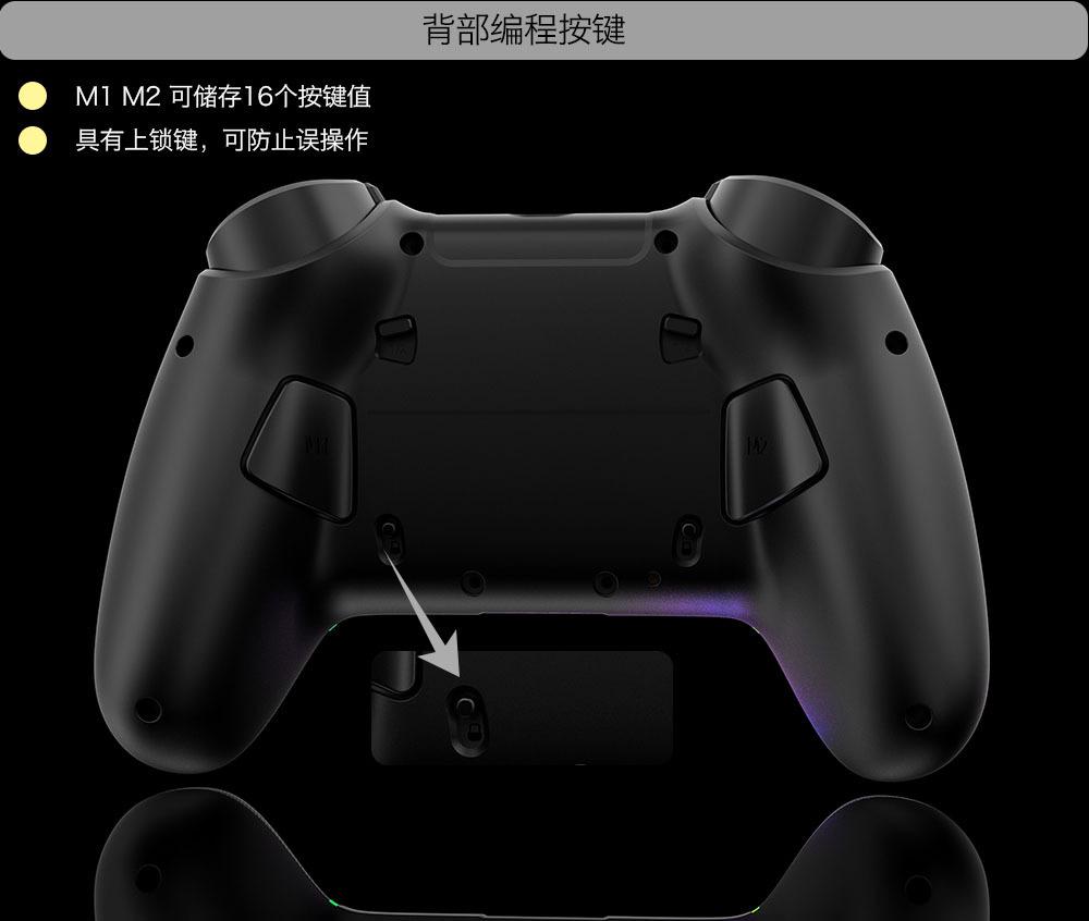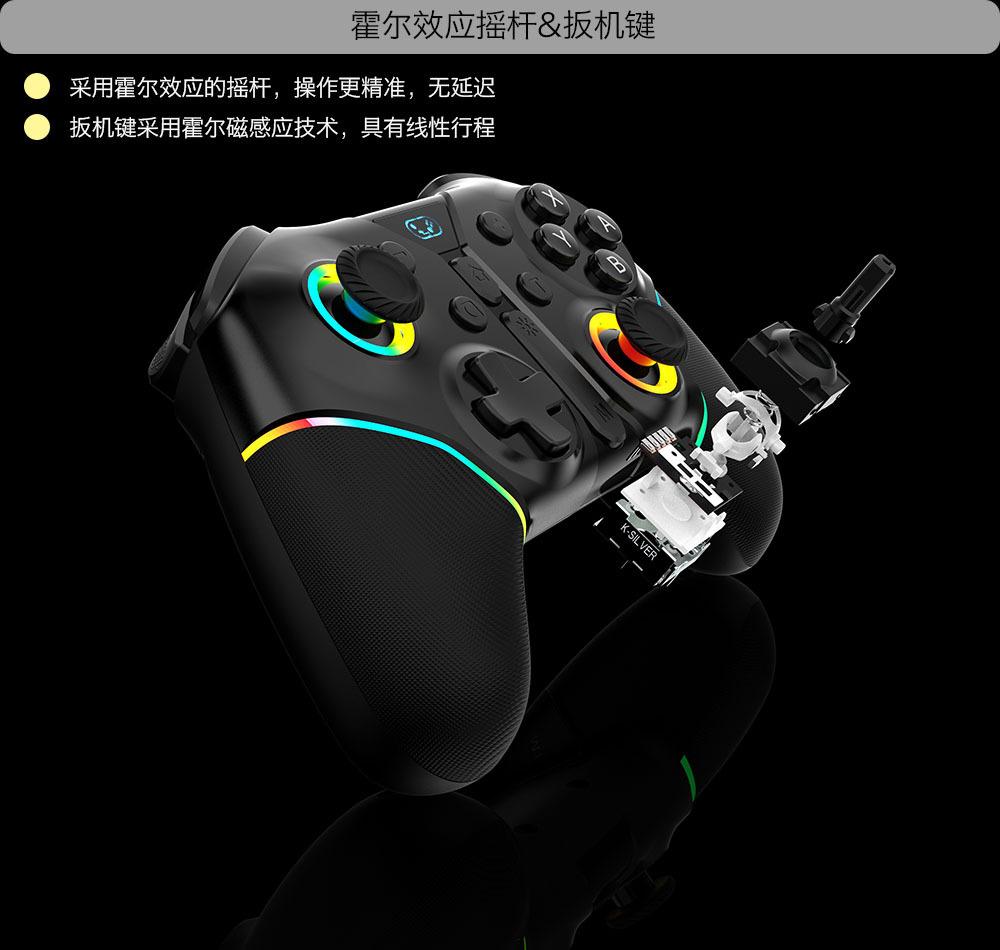 Iluminação RGB e design de joystick com efeito Hall + botão de gatilho;