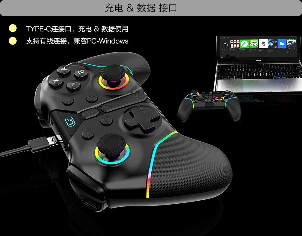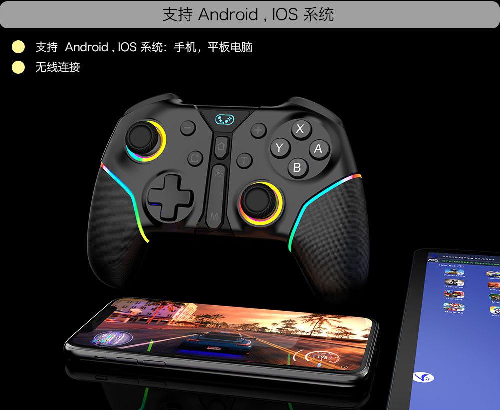 Nome do produto: Controlador de jogo multifuncional sem fio Bluetooth com vibração de seis eixos para Switch/Android/IOS/PC