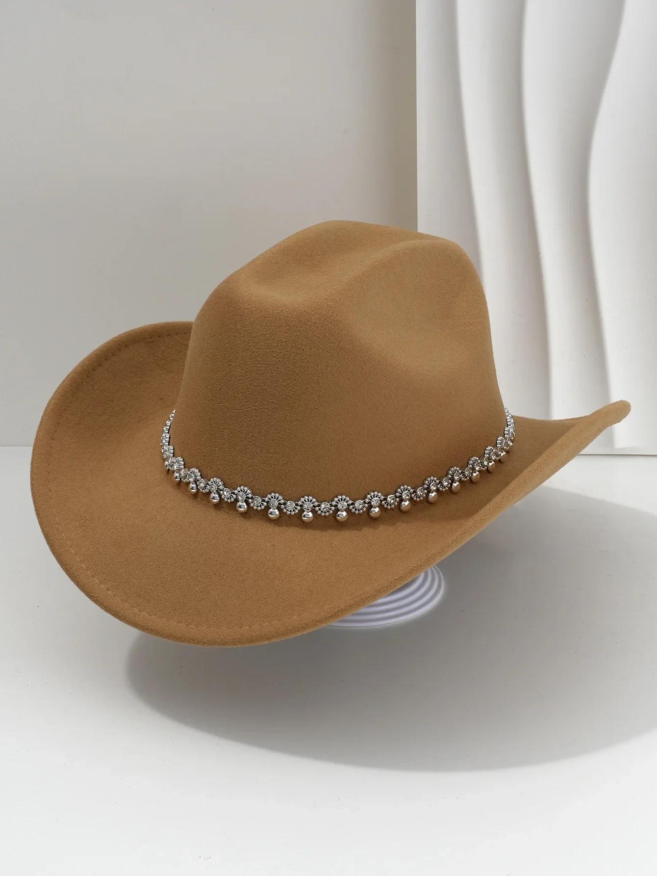 Chapéu de Cowboy Ocidental Masculino e Feminino com Flor Gotas de Água Strass Aba Larga Chapéu de Jazz Chapéu de Festa de Aniversário
