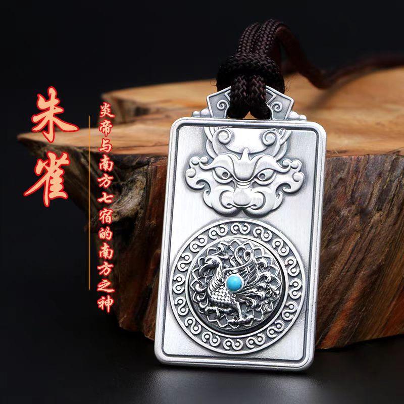 [Nome]: Pingente de prata pura quatro bestas míticas Dragão Azure, Tigre Branco, Pássaro Vermilion