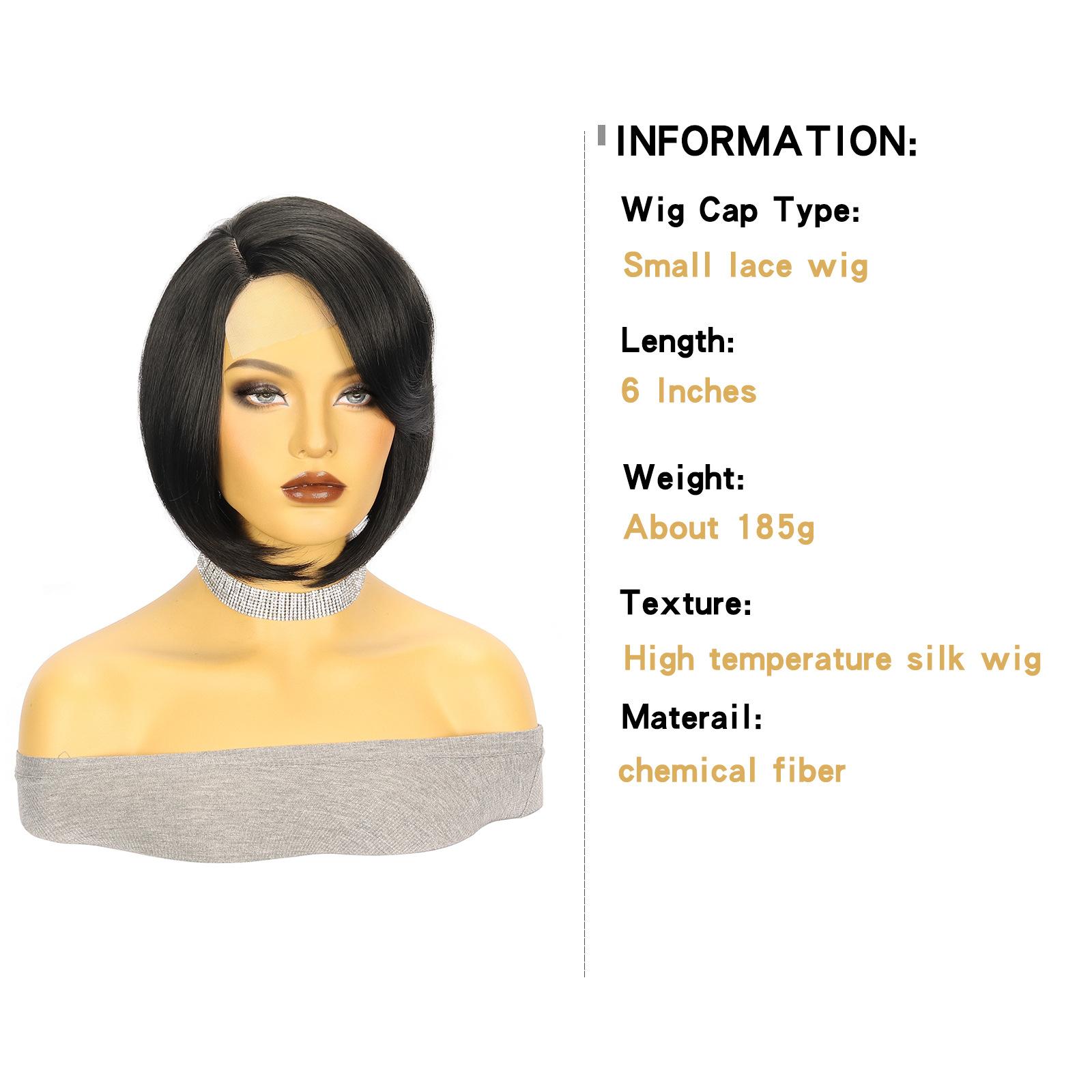 ![]() Peruca europeia e americana moda peruca senhoras pequena renda parcial fibra peruca preto curto cabelo liso Xuchang fabricante
