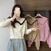 Compre Suéter de malha slim fit estilo coreano, novo outono, feminino, ombro de fora, design de costura, manga comprida, base de nicho, top no atacado no Joom.pro
