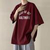 Compre Marca Americana da Moda Camiseta de Algodão Pesado Borgonha Manga Curta Masculina Verão Design de Nicho Camiseta com Letras no atacado no Joom.pro