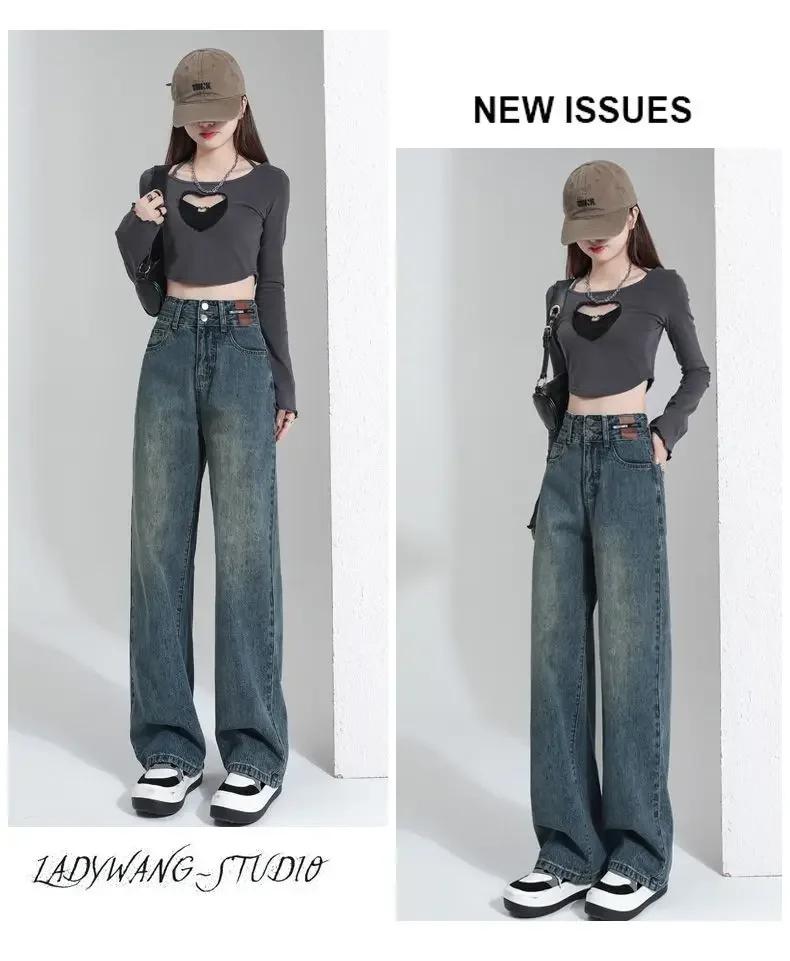 Compre Jeans retrô moderno de cintura alta e perna larga feminino 2025, nova chegada, pequeno, solto, retrô, reto, jeans no atacado no Joom.pro