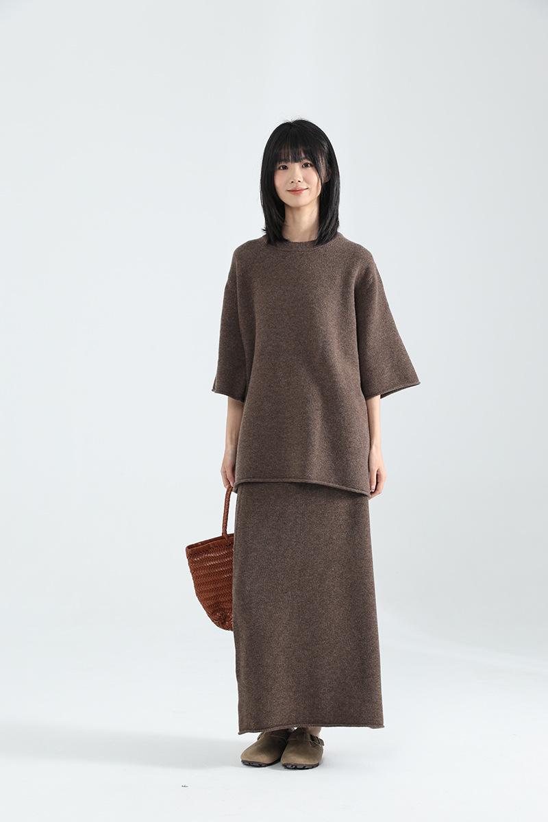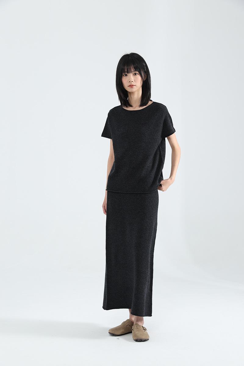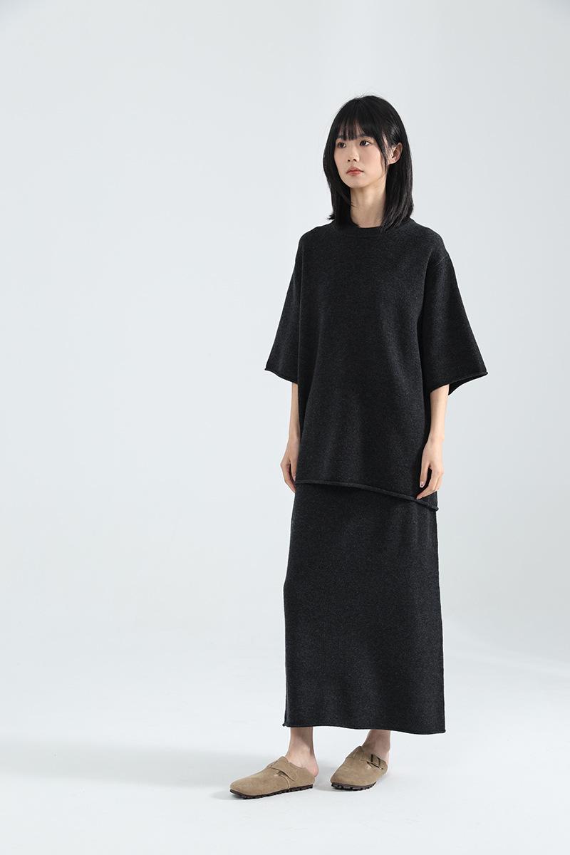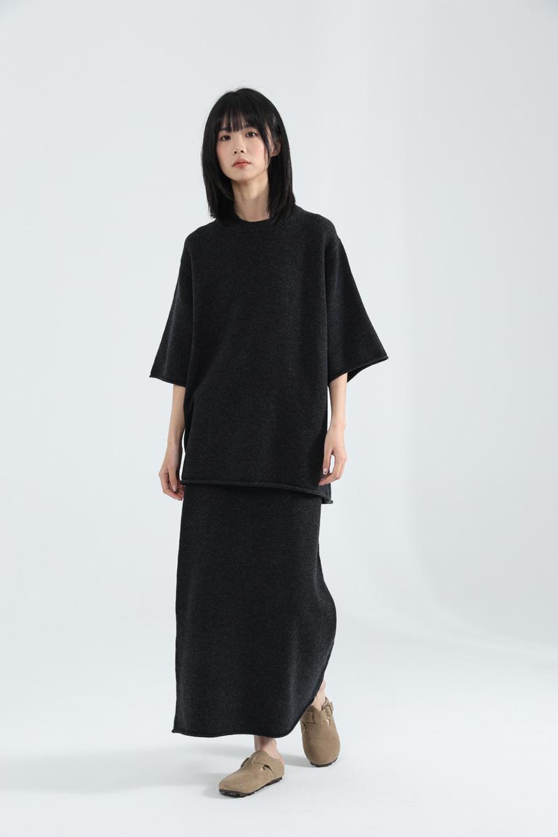 Camiseta de malha perfilada + saia para criar um look estiloso