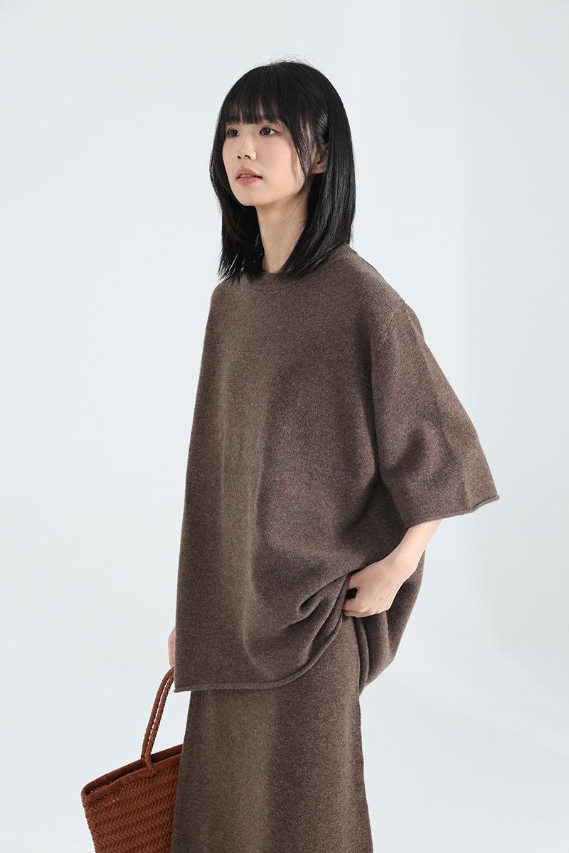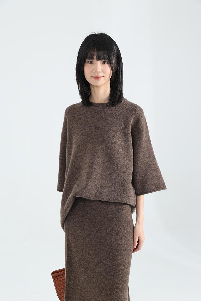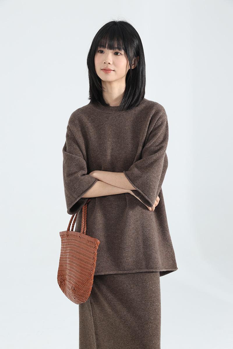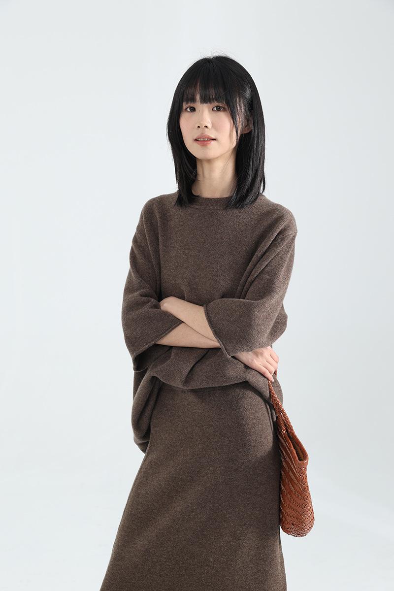 Terno de malha de lã interpreta estilo luxuoso e tranquilo