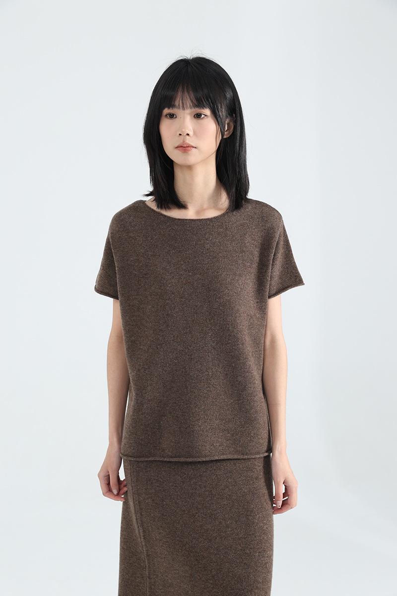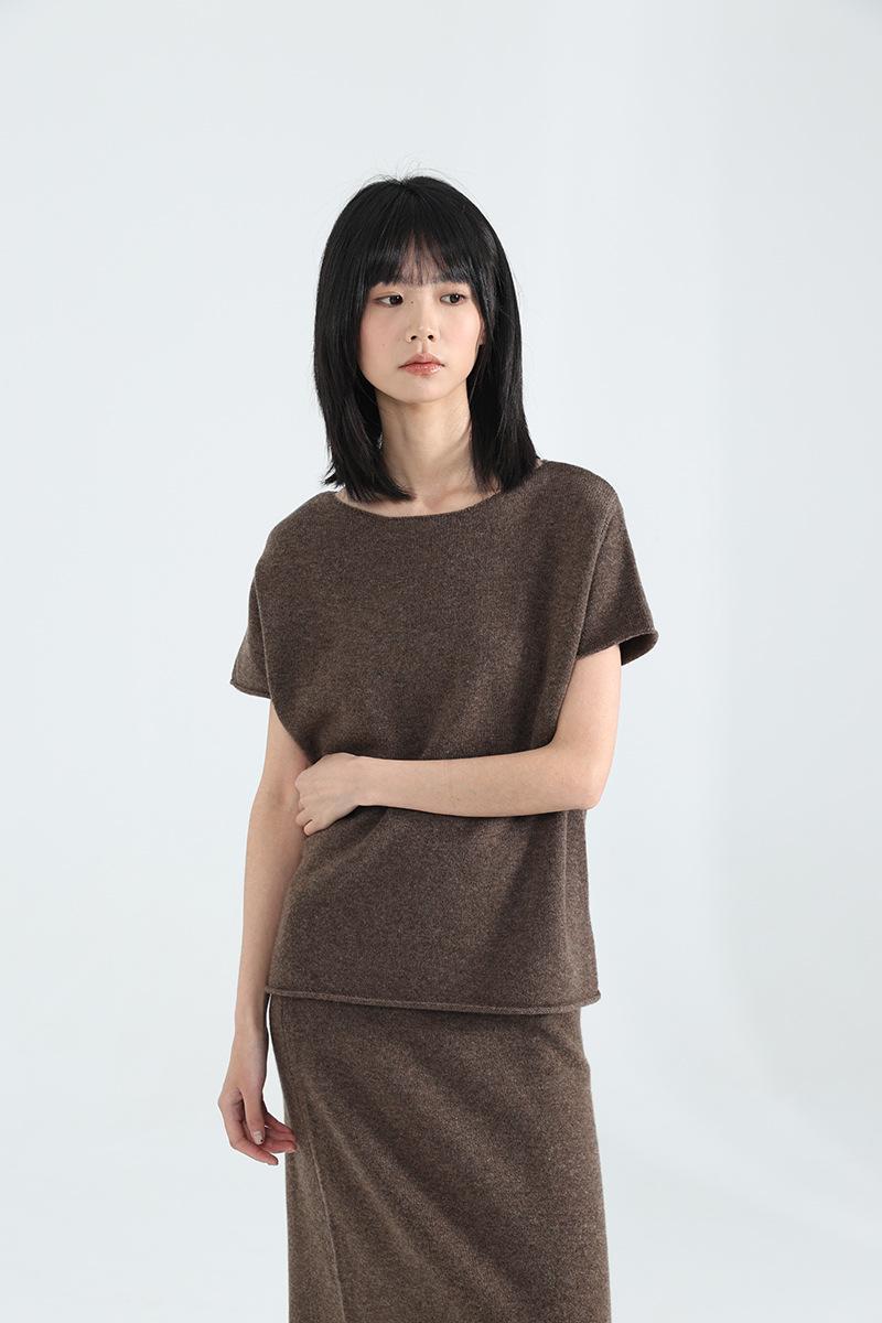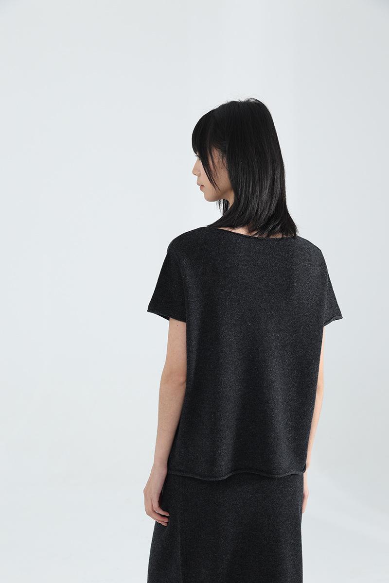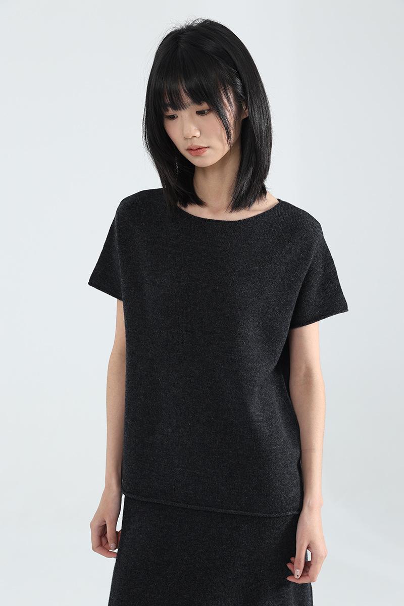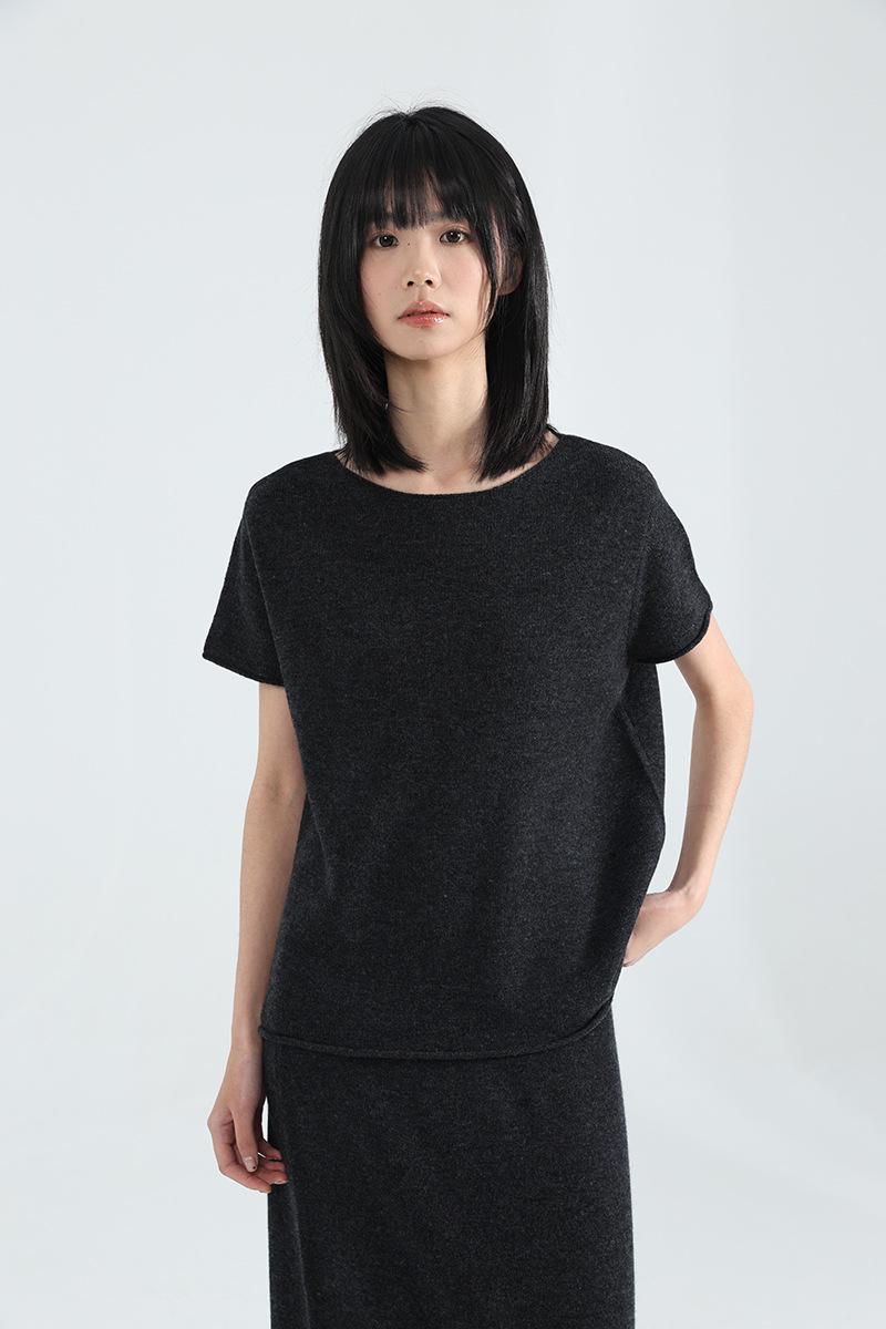 A suavidade do tricô e a colisão das linhas de alfaiataria criam uma sensação harmoniosa de ordem e beleza