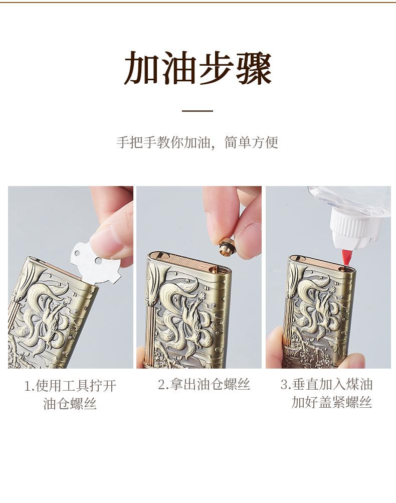 Observação: Os novos isqueiros a querosene não contêm óleo, portanto, você mesmo deve enchê-los antes de usá-los. Estão disponíveis em nossa loja, na categoria acessórios, coluna de querosene.