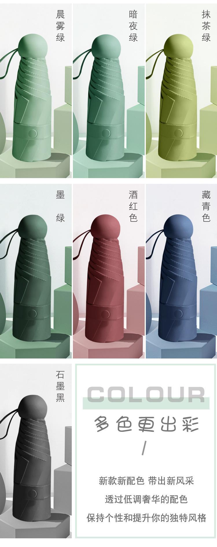 4.Guarda-chuva pequeno plano de 6 dobras e 6 ossos douradoDisponível em 6 cores, tecido macio totalmente blackout, porta guarda-chuva em alumínio dourado push-pull para fácil abertura e fechamento! Todas as séries em estoque! Precisa consultar o atendimento ao cliente, o preço é muito bonito....