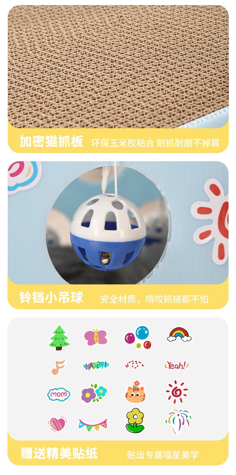contenido del producto:6 tableros de PP, 2 rascadores para gatos, 20 campanas (con cuerdas para colgar), pegatinas exquisitas