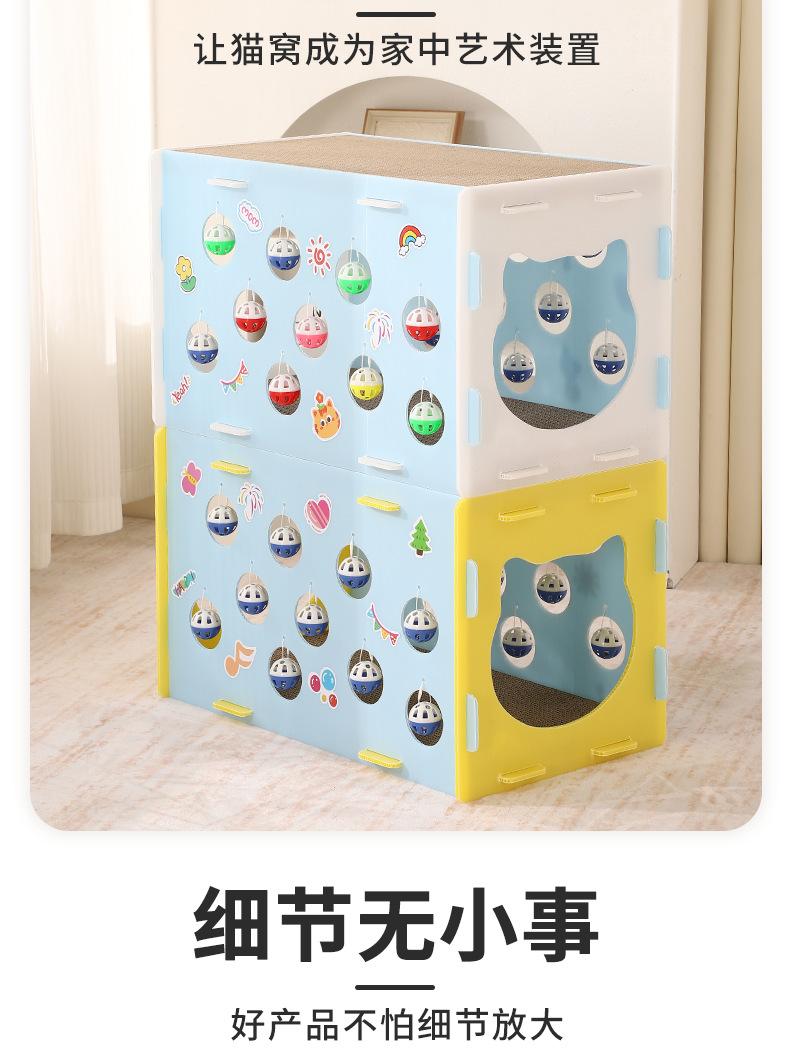 Característica 1:Hecho de material resistente, puede soportar acciones como arañazos y saltos de los gatos, no se daña fácilmente, tiene una larga vida útil y utiliza material PP respetuoso con el medio ambiente para garantizar la salud y seguridad de los gatos.
