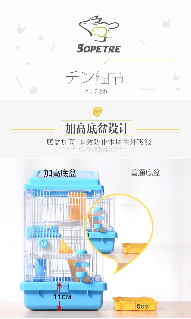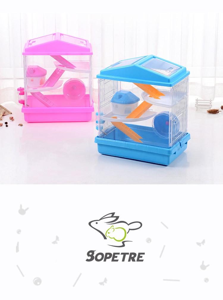 4. Design de porta dupla, com tigela de comida antiqueda, oito rebites, garrafa de água de 80 ml, roda grande de corrida, três tubos, duas divisórias, tampas de rosca que podem ser fixadas e quarto de dormir de fábrica embutido, que pode ser configurado DIY à vontade. Há 4 em uma caixa, e a casa é dividida em três camadas: superior, média e inferior. A camada superior é para descansar, a camada do meio é para brincar e a camada inferior é para comer. Pode manter a higiene do ambiente e também pode manter os ratos em atividade adequada e promover o metabolismo.