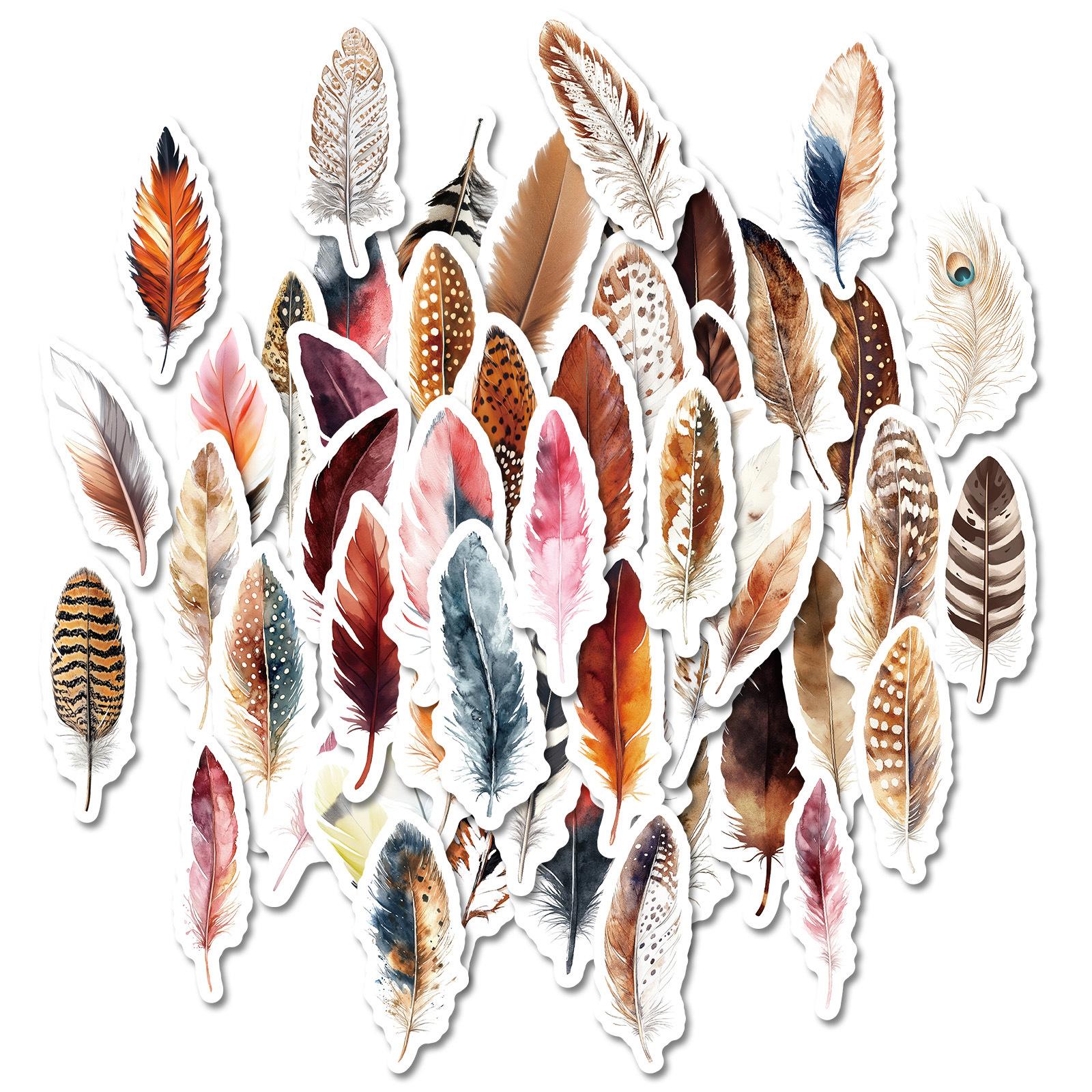 50 Adesivos de Grafite com Penas de Fantasia Decorativos para Guitarra, Caderno, Bagagem, Adesivos à Prova D'água para Venda por Atacado Transfronteiriço