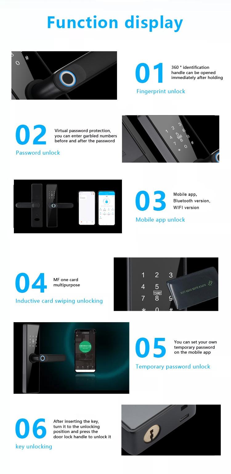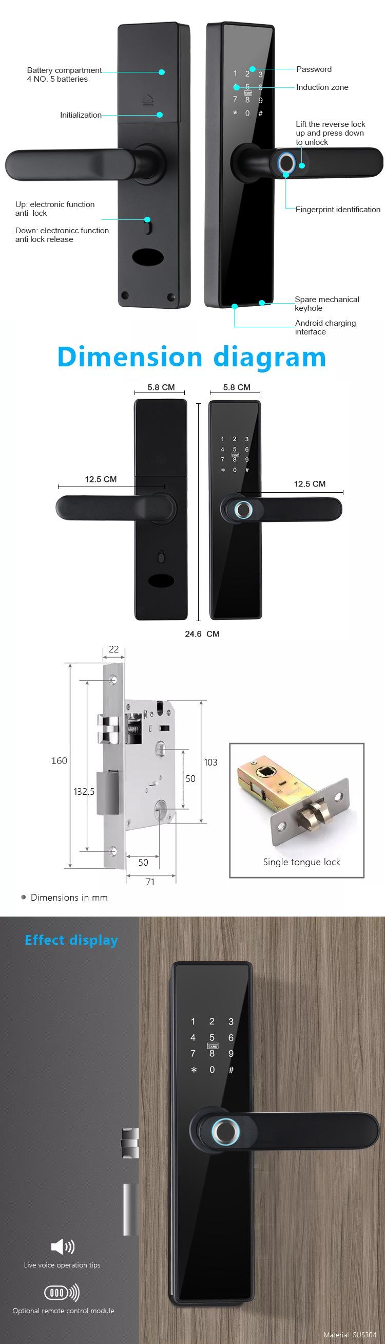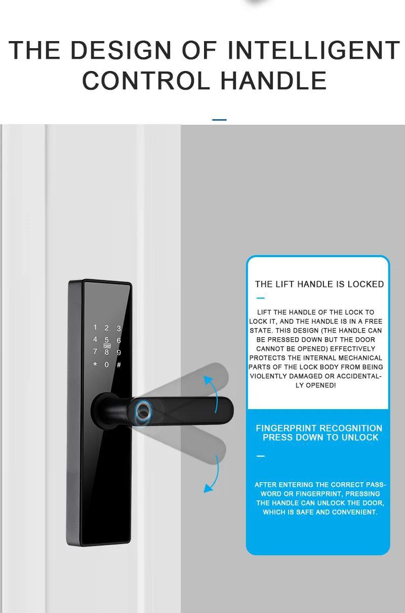 Fechadura digital de impressão digital para porta de madeira, fechadura para casa de aluguel, fechadura inteligente remota para casa, com senha, sistema Apple Matter, fechadura eletrônica