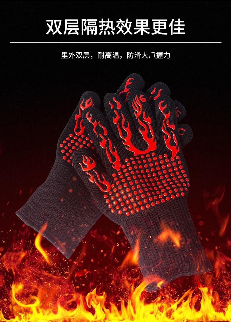 【Material】1.Bienes al contadoNuevo hilo de fibra ignífuga para capa exterior+Capa interior de algodón+silicona de doble cara (el color de la silicona se puede personalizar), puede soportar altas temperaturas de 800 grados, es decir, 1472 grados Celsius y no cambiará de color al quemarse.