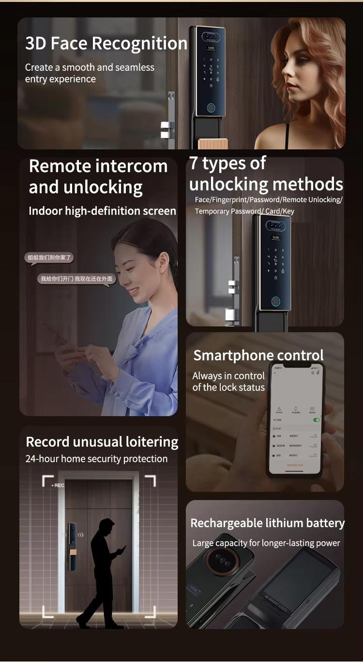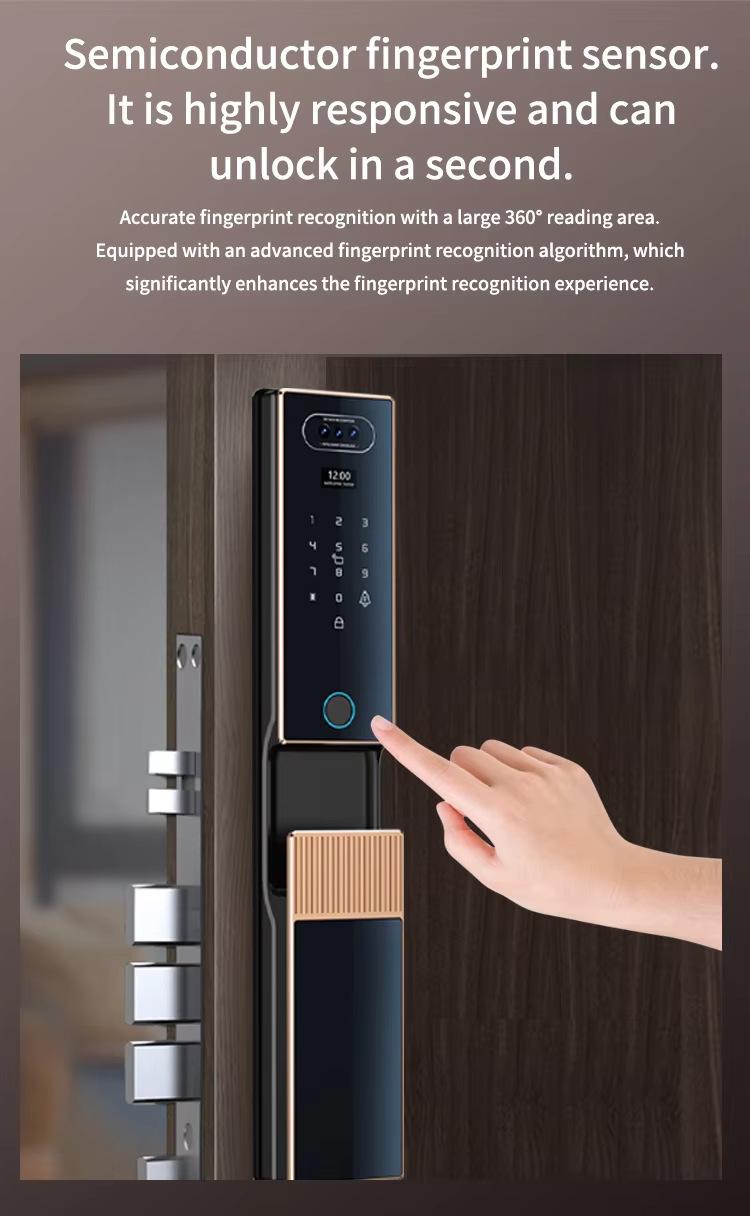 Porta anti-roubo fechadura de porta doméstica reconhecimento facial por veia palmar grafite fechadura inteligente vídeo remoto fechadura de porta impressão digital senha