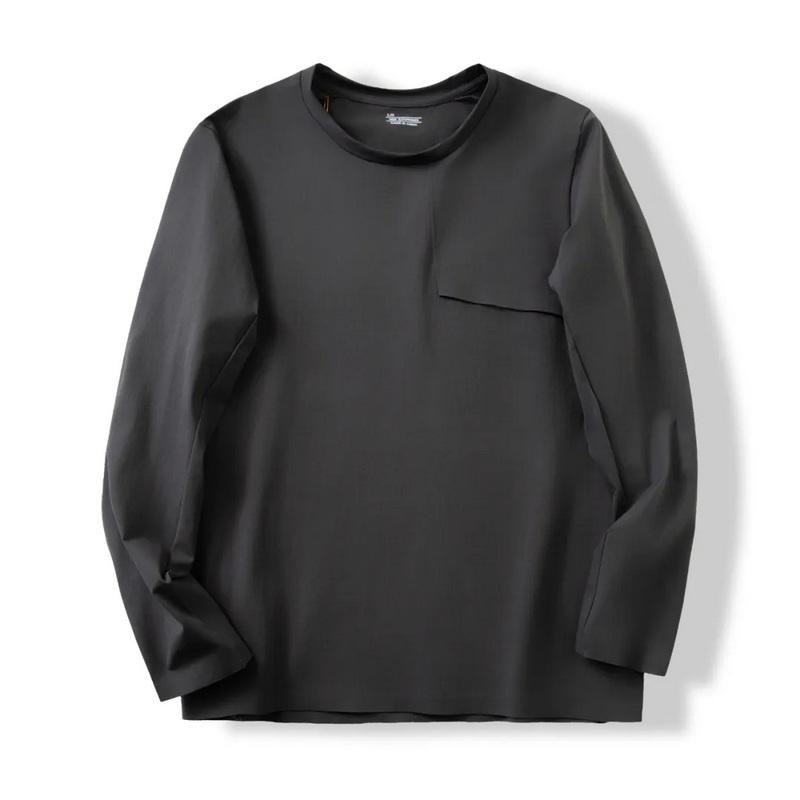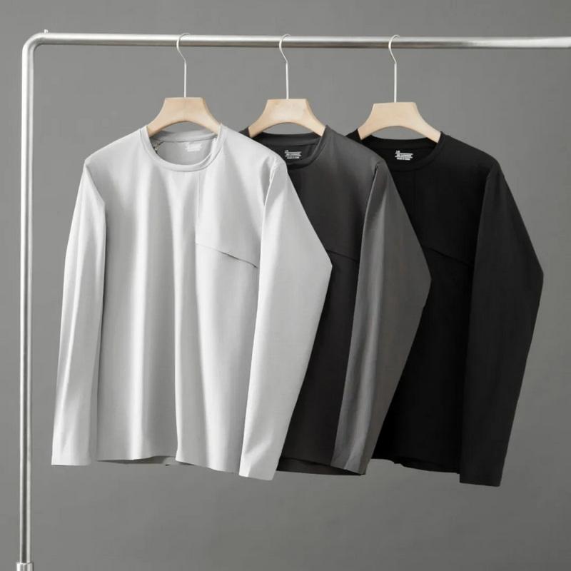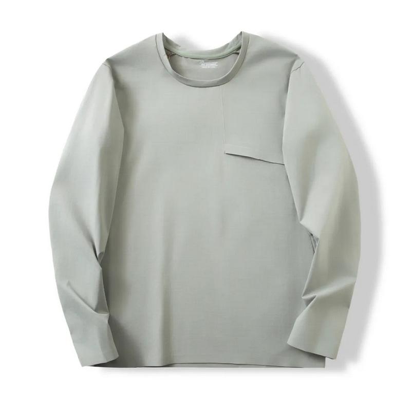 Cuello redondo y mangas largas, corte deportivo tridimensional, ni demasiado holgado ni ajustado, justo.