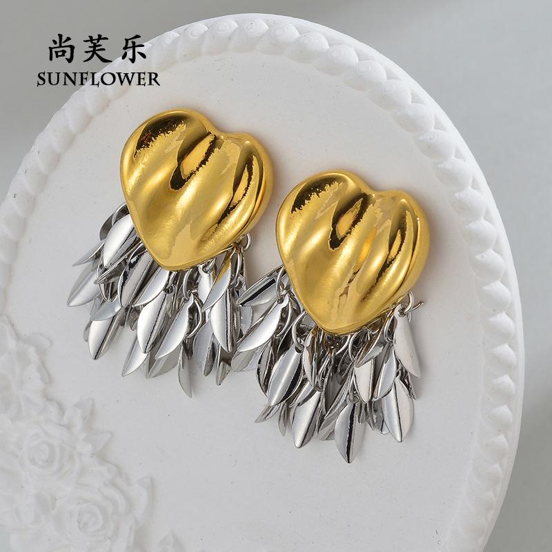 Brincos de amor de aço inoxidável com borlas de folhas geométricas transfronteiriças, brincos de nicho criativos e personalizados de alto senso, atacado