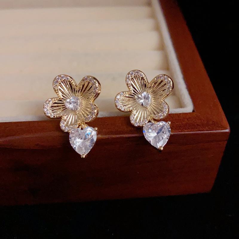 Metal flower hanging love earrings (thick gold plating)