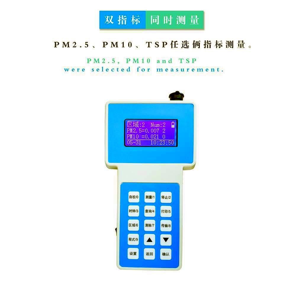 O instrumento é uma nova geração de instrumentos de medição inteligentes para medição rápida e em tempo real da concentração de material particulado inalável no ar por centros de controle de doenças, supervisão de saúde, monitoramento ambiental e outros departamentos.