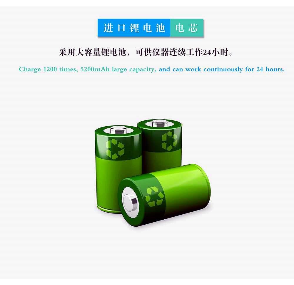 8. Fonte de alimentação de trabalho: bateria embutida, CA e CC de dupla finalidade; quando a bateria embutida está totalmente carregada, ela pode medir continuamente por 8 horas;
