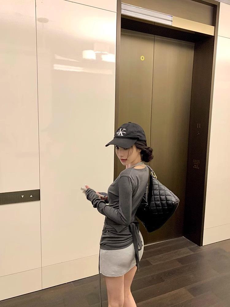 [Jaqueta com saia de pescoço pendurado] Vestido feminino primavera e outono American Hot Girls Slim Fit Hip Sling Vestido cinza