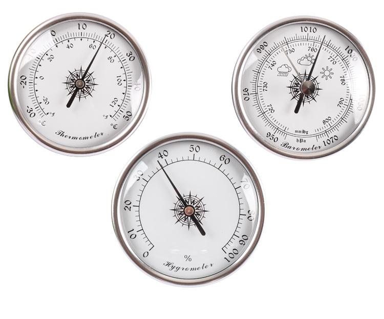 Termômetro e higrômetro de metal de alta precisão de 50mm embutido para carro, bagagem, instrumento musical, higrômetro tipo mecânico sem bateria