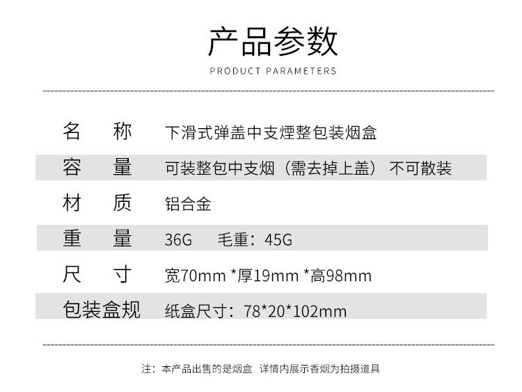 Nome: Caixa de cigarros com tampa deslizante para embalar cigarros de tamanho médio