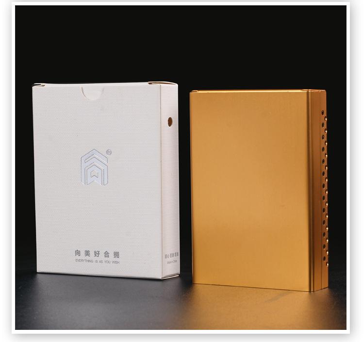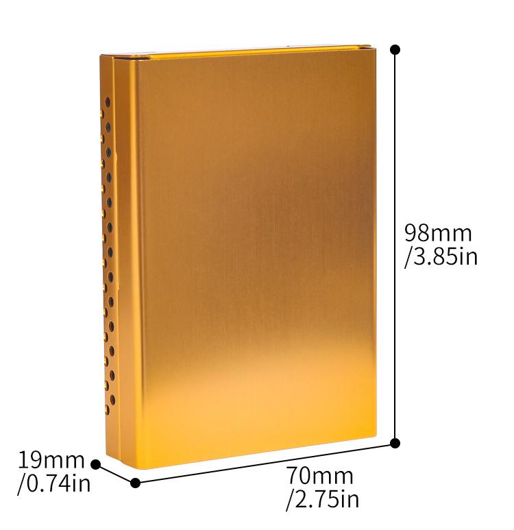 Capacidade: Pode conter um maço inteiro de cigarros de tamanho médio (é necessário remover a tampa superior), não em grandes quantidades