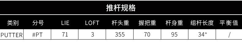 | Características | Taco com baixo centro de gravidade, alta tolerância a erros e fácil controle, adequado para golfistas iniciantes | |||