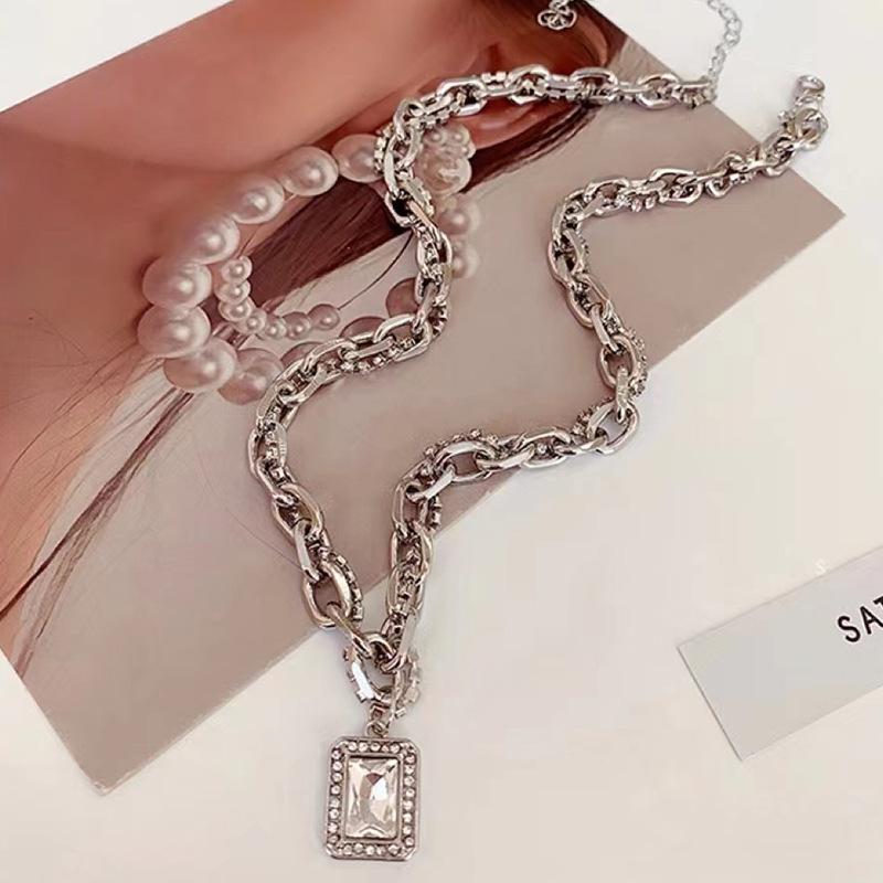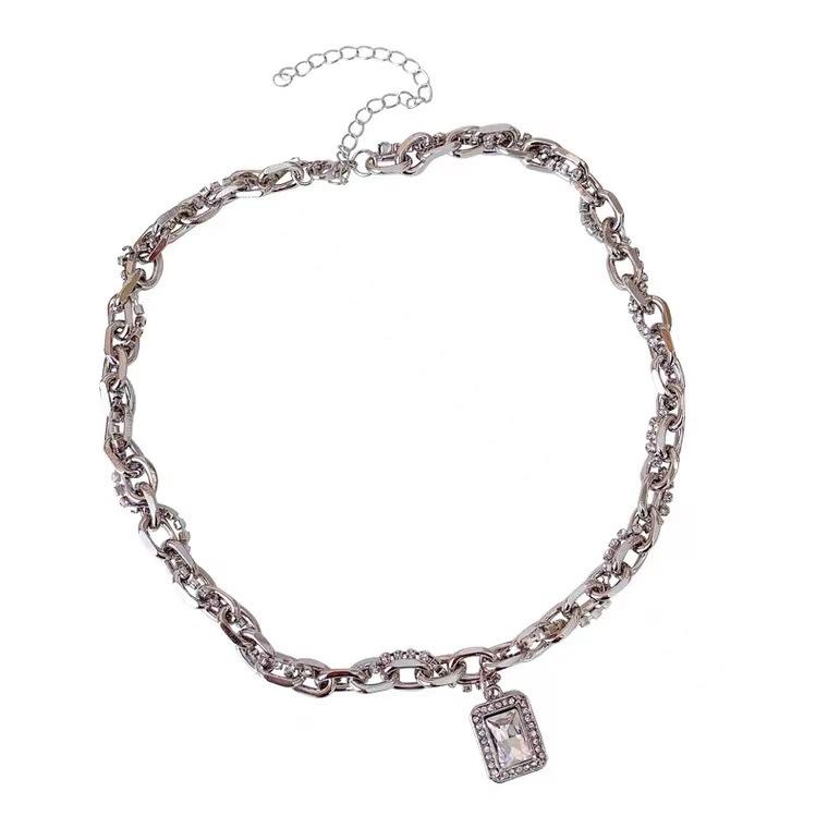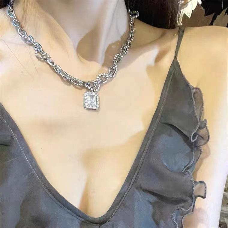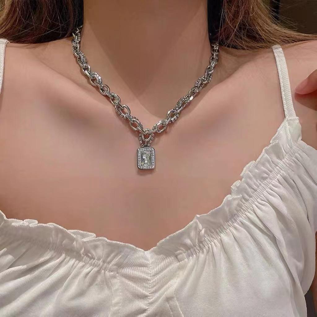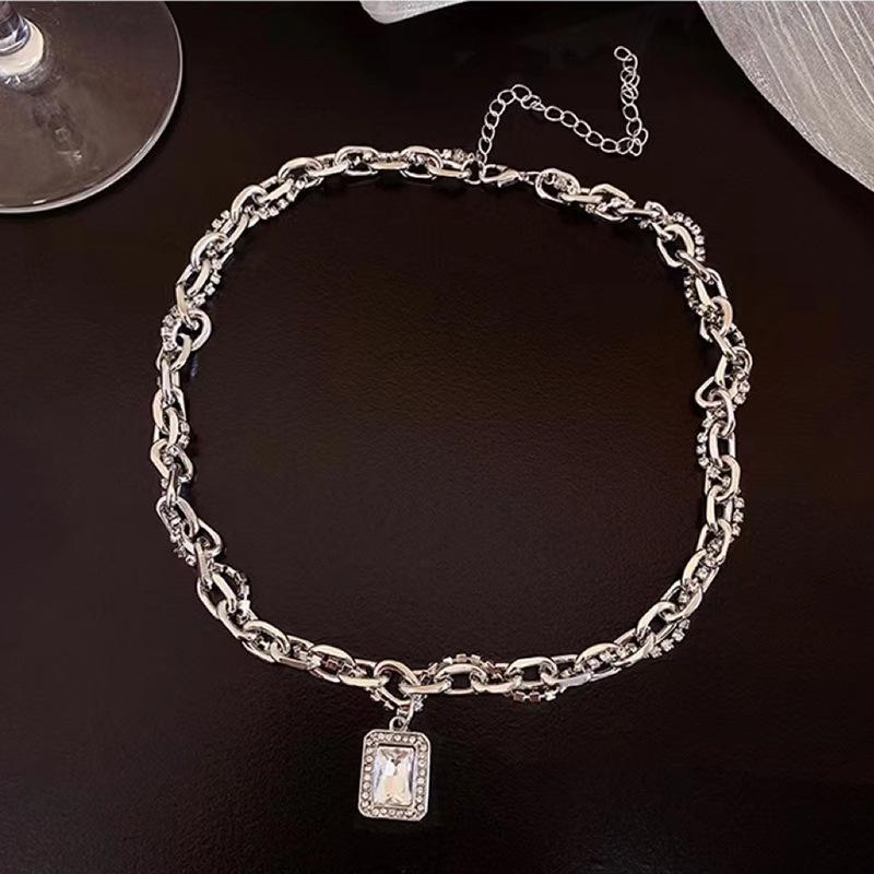 Aço titânio + strass + cristal. Comprimento da corrente 50 + 5 cm, pingente 1.6 * 1.3