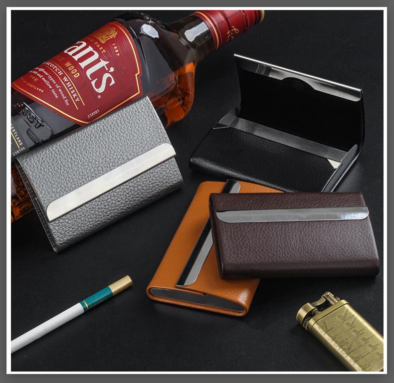 Caixa de cigarro média comum com 9 unidades, porta-cigarros portátil para homens, controle de personalidade, caixa de cigarro de couro para fumar, simples