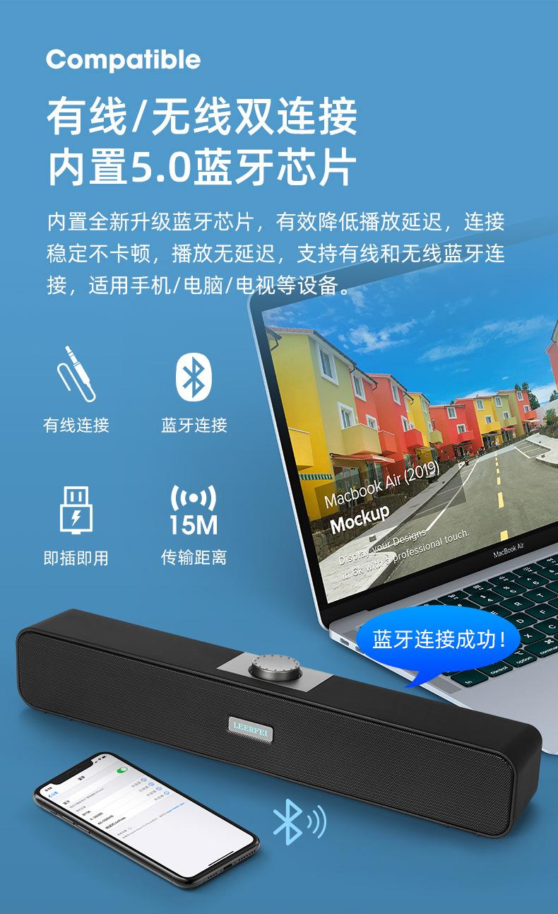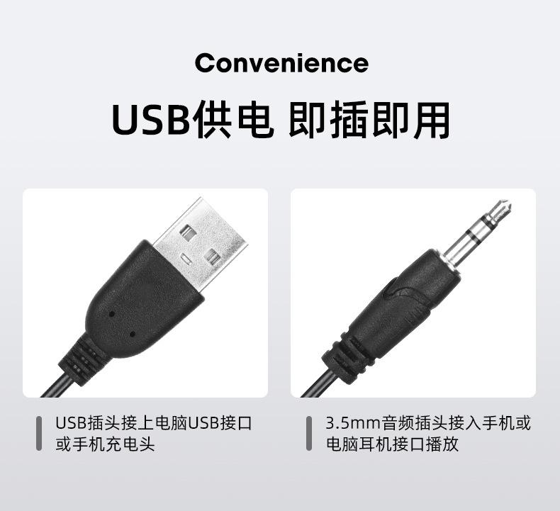 Conexão de áudio 3.5 alimentada por USB com versão de conexão Bluetooth.