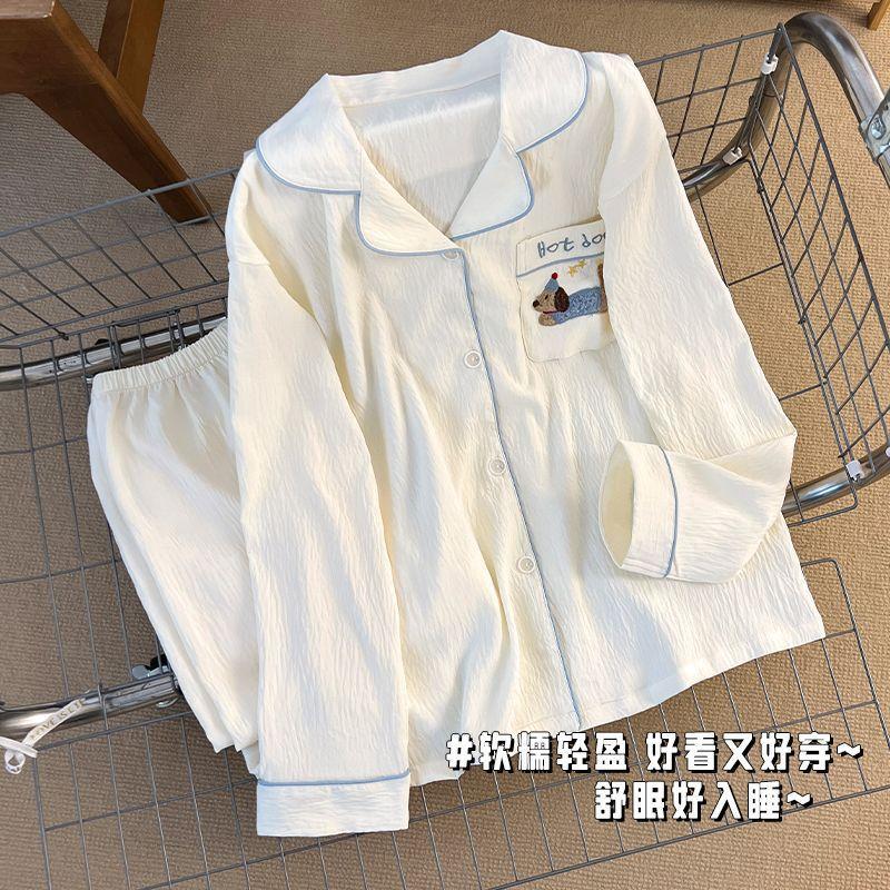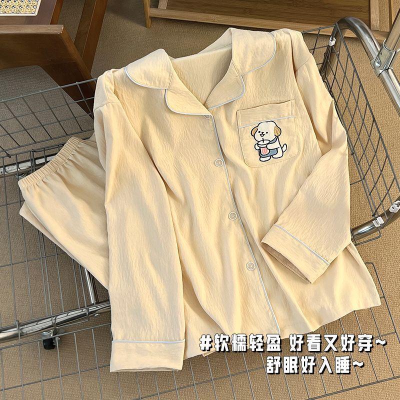 Pijama japonês de algodão com nuvens, feminino, primavera e outono, manga longa, desenho animado, doce, verão, ar condicionado, roupa para casa