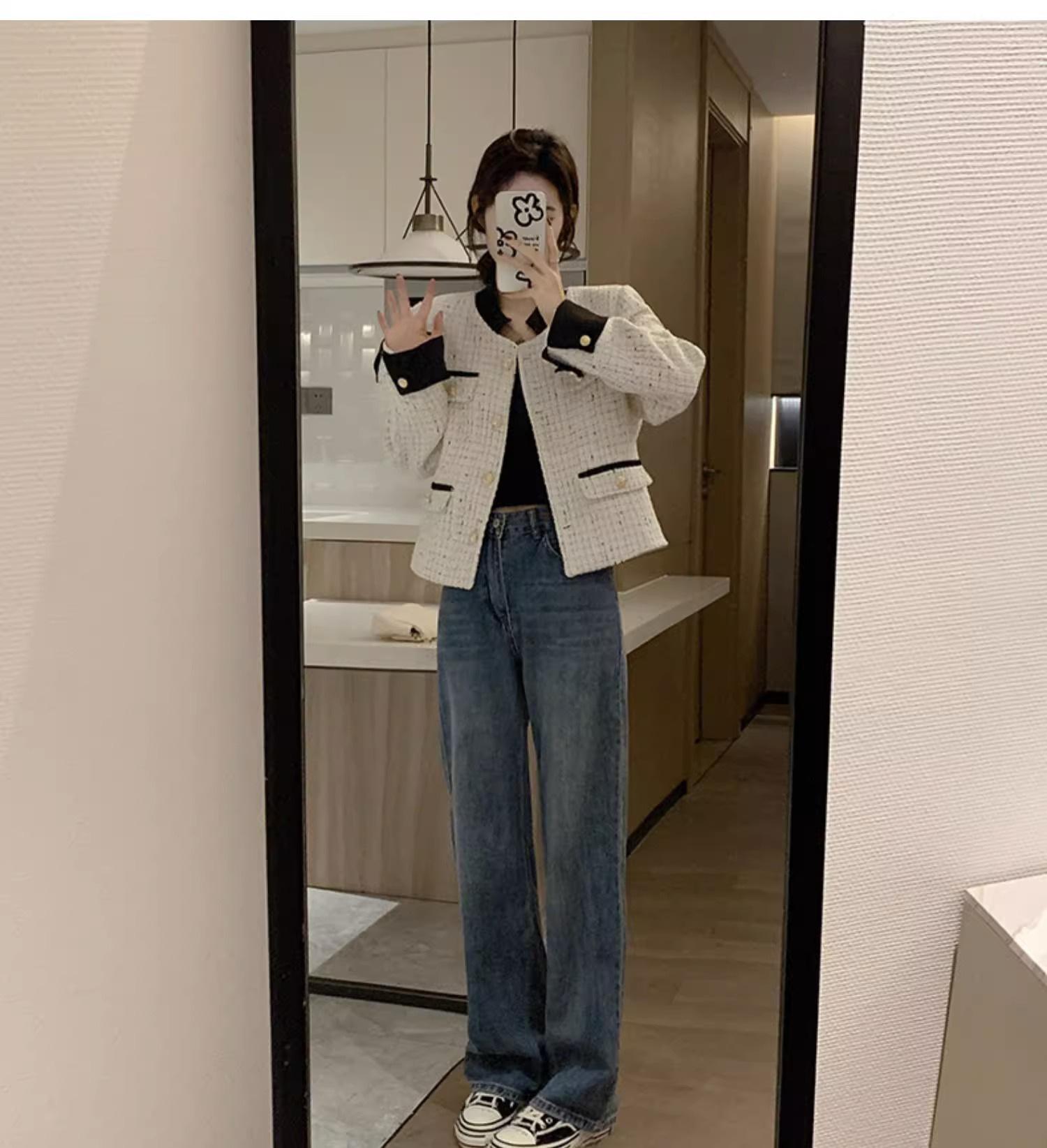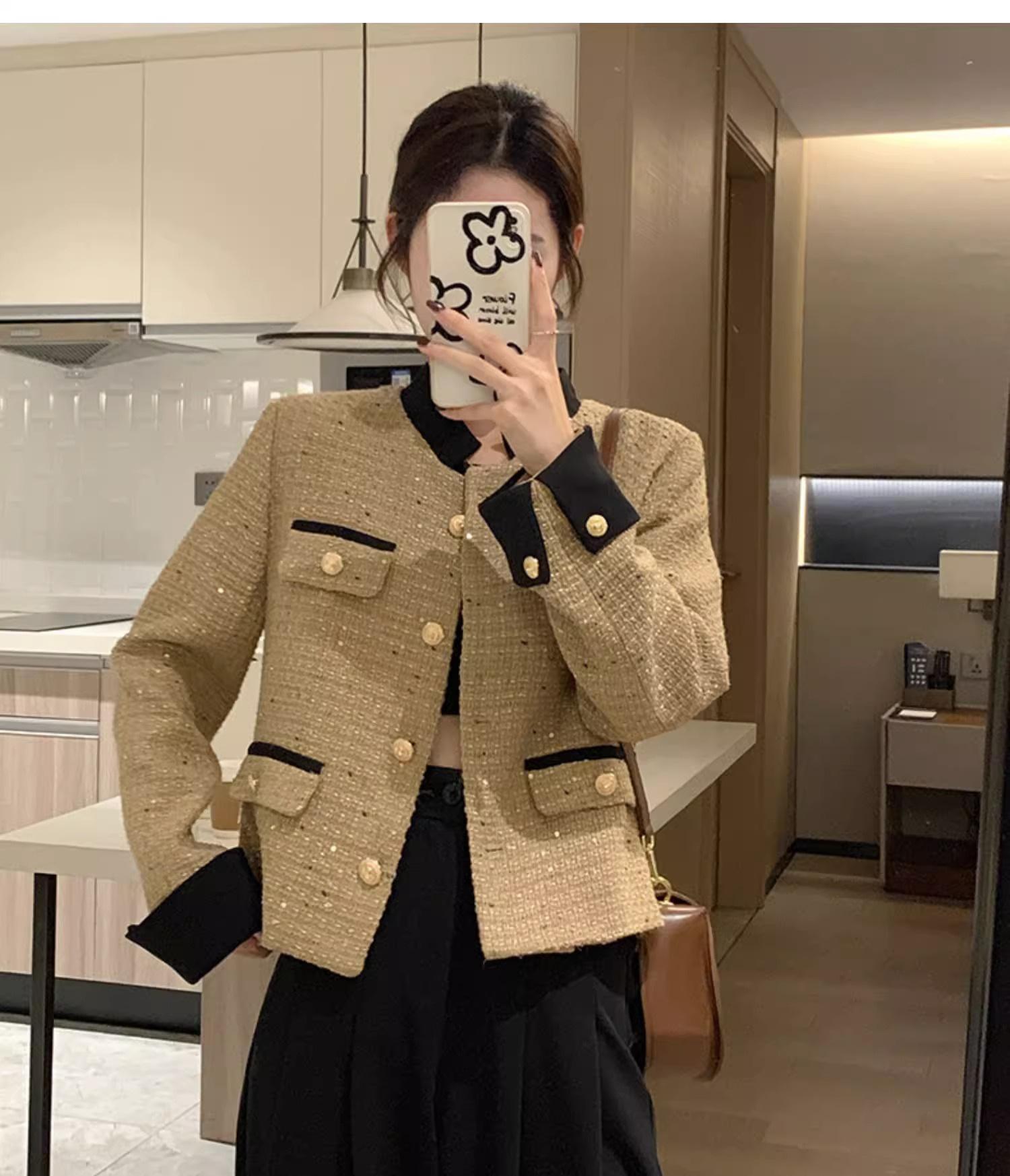 Outono e inverno novo estilo francês pequeno perfume casaco curto da moda slim e emagrecedor top petite design chique emagrecedor