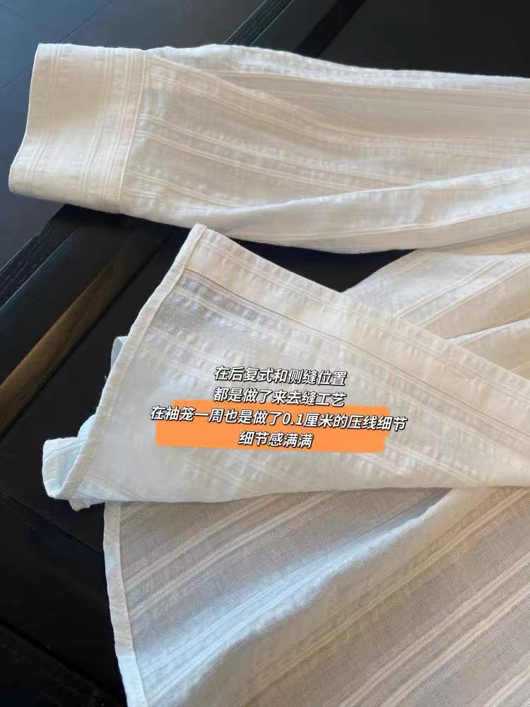 listras brancas clássicasTanto em termos de tecido quanto de estilo, é uma peça que pode ser usada por muitos anos.