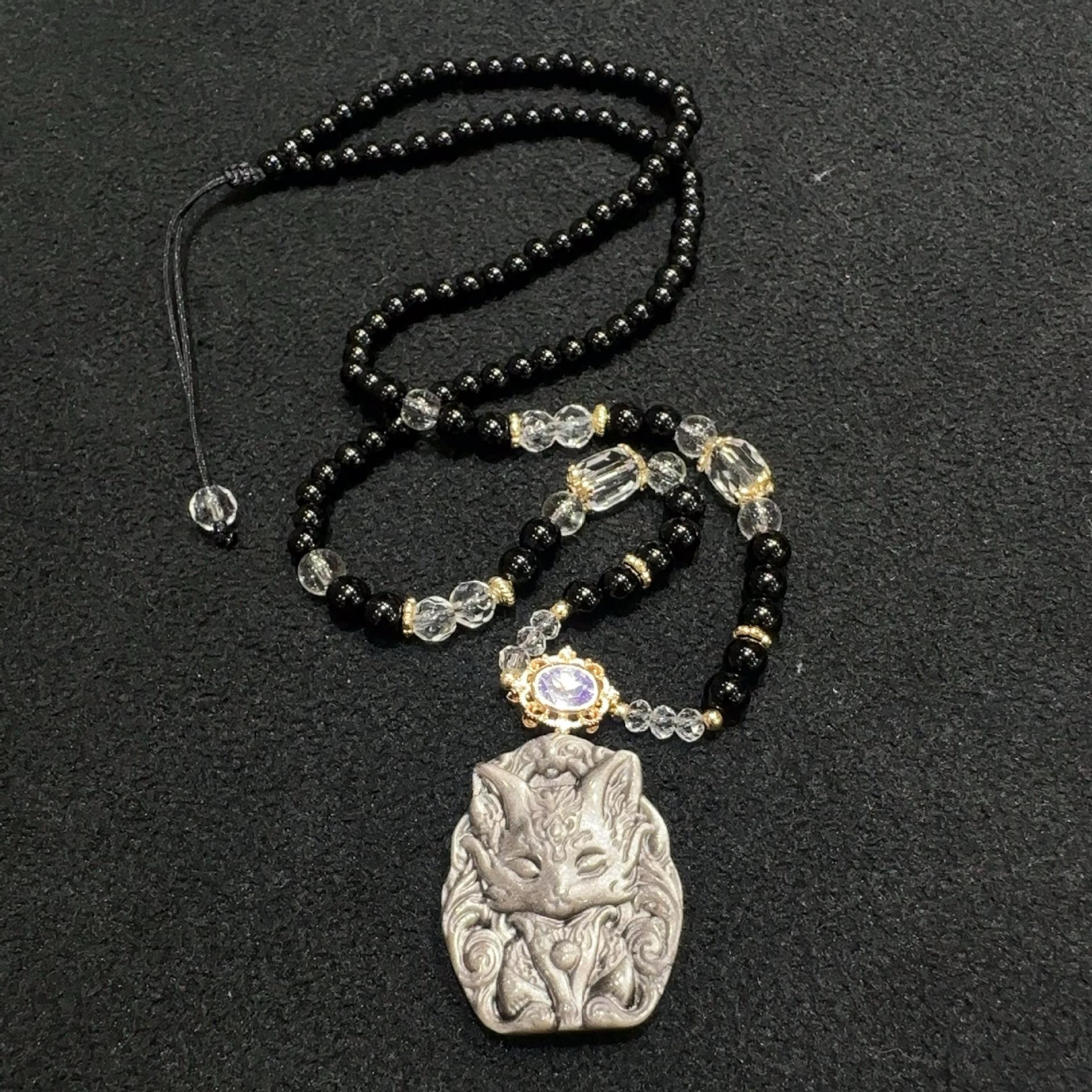 【Nome do Produto】Pingente Original de Raposa em Obsidiana Natural