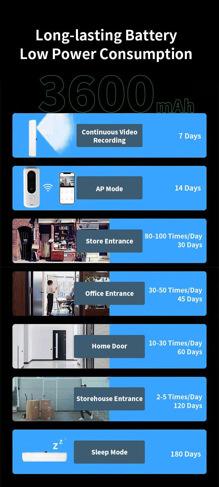 1: introdução da função do produto 1: configurações simples do aplicativo "weihome", controle com uma mão 2; Lente grande angular de alta definição 1080P. 3: Tempo de espera ultra longo (6 meses). 4: Suporta despertar ativo remoto, conversa bidirecional, vídeo unidirecional, identificar o visitante. 5: Indução PIR humana, detecção de movimento, alguém fica, o anfitrião acorda e envia uma mensagem. 6; Visão noturna infravermelha, identifica visitantes no escuro como dia. 7: Gravação de fotos, gravação de detecção de movimento, gravação de visualização de APP, registro do comportamento do visitante. 8: Suporta 12 idiomas, siga as mudanças no sistema de idioma do telefone móvel. A configuração de fábrica é o inglês. Idiomas pequenos são padronizados como inglês. 9: Suporta 8 telefones celulares para conectar à campainha, 3 telefones celulares para assistir ao mesmo tempo. 10, suporte para cartão TF 128G, cobertura de loop de conteúdo. 11: Modo de carregamento, DC 5V-1A.