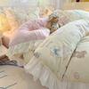 Novo conjunto de quatro peças de toalha de algodão bordado, capa de colcha de algodão bordado, dormitório estudantil de desenho animado, conjunto de três peças por atacado