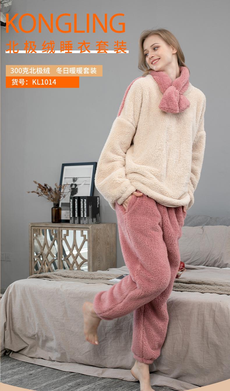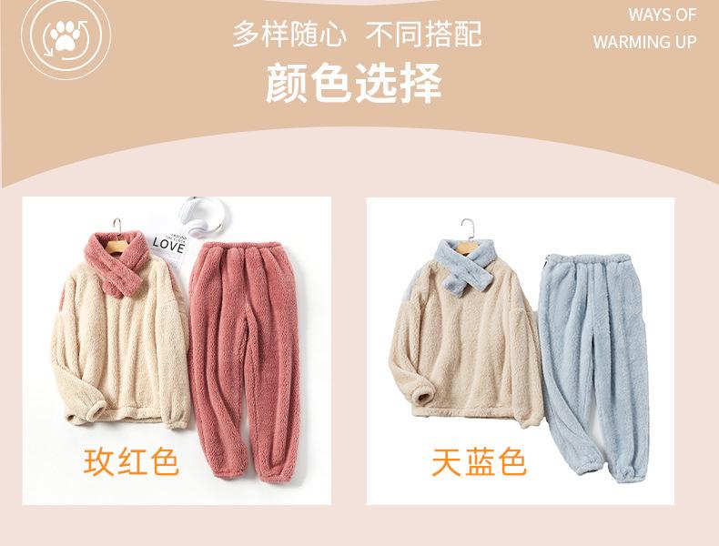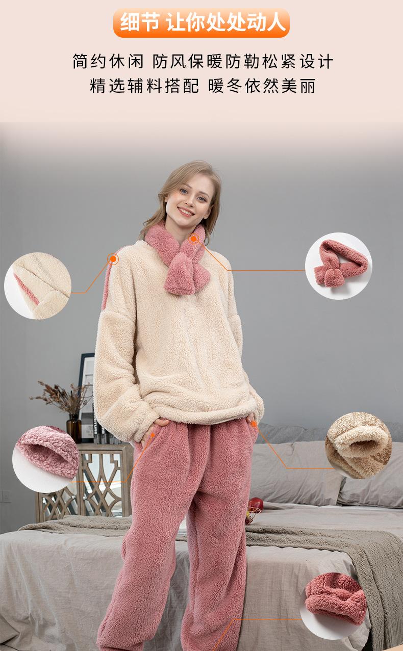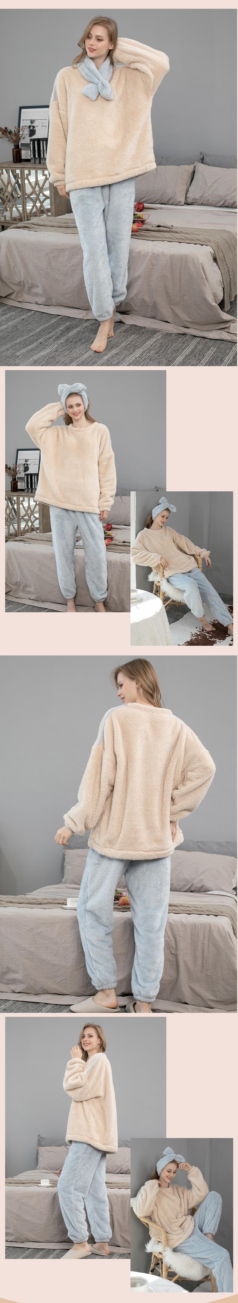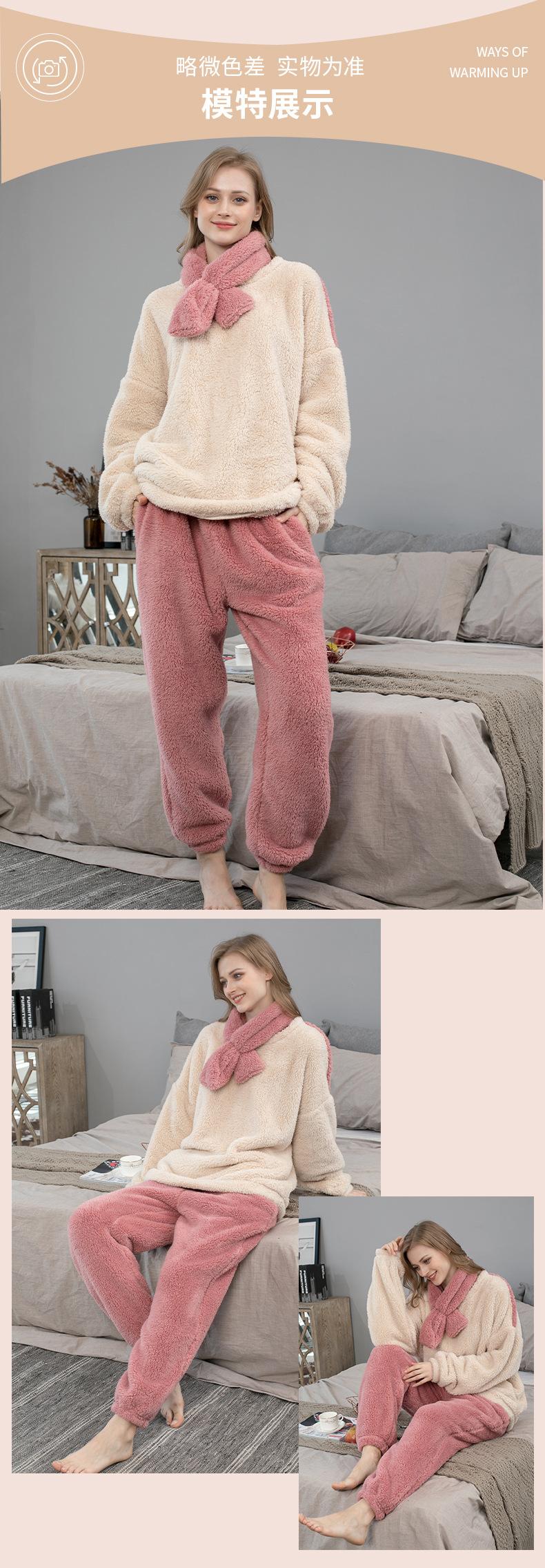 Pijama feminino plus size de lã coral, outono e inverno, manga comprida, roupa para casa, forro de lã, pijama feminino